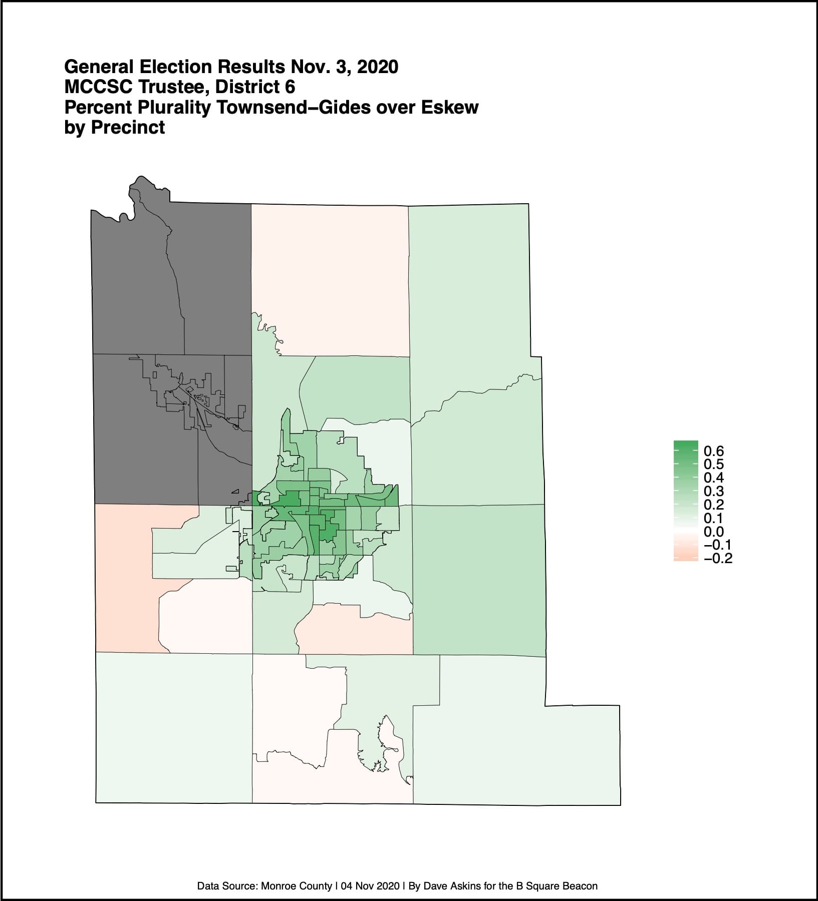 This was the first MCCSC school board election won by Townsend-Gides. She was appointed to the board in January 2020 by a vote of other trustees to replace Lois Sabo-Skelton, who resigned in late 2019. Townsend-Gides is a novelist. She was the Appalachian Writer in Residence at Berea College for the spring 2020 semester.