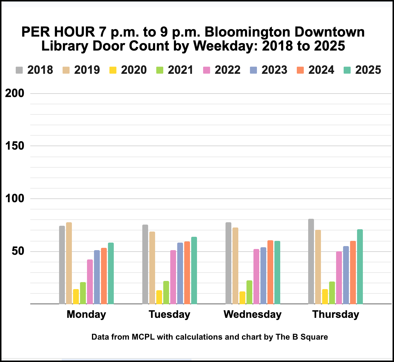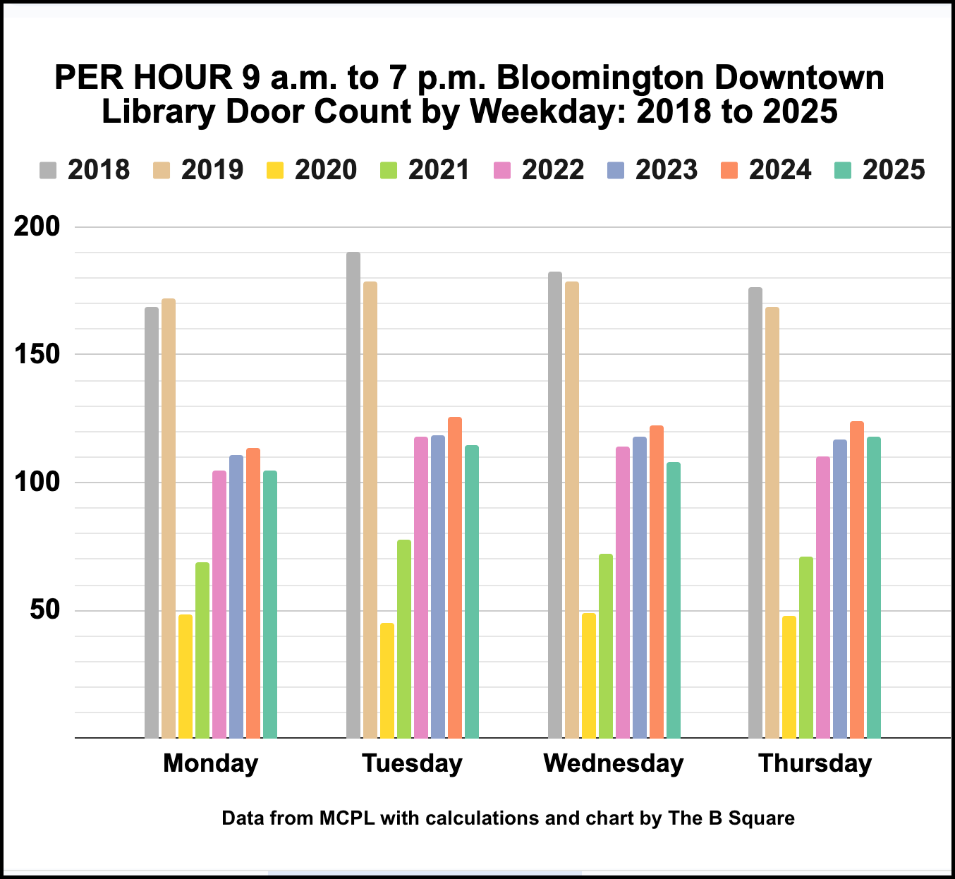 Data is from Monroe County Public Library with calculations and chart by The B Square.