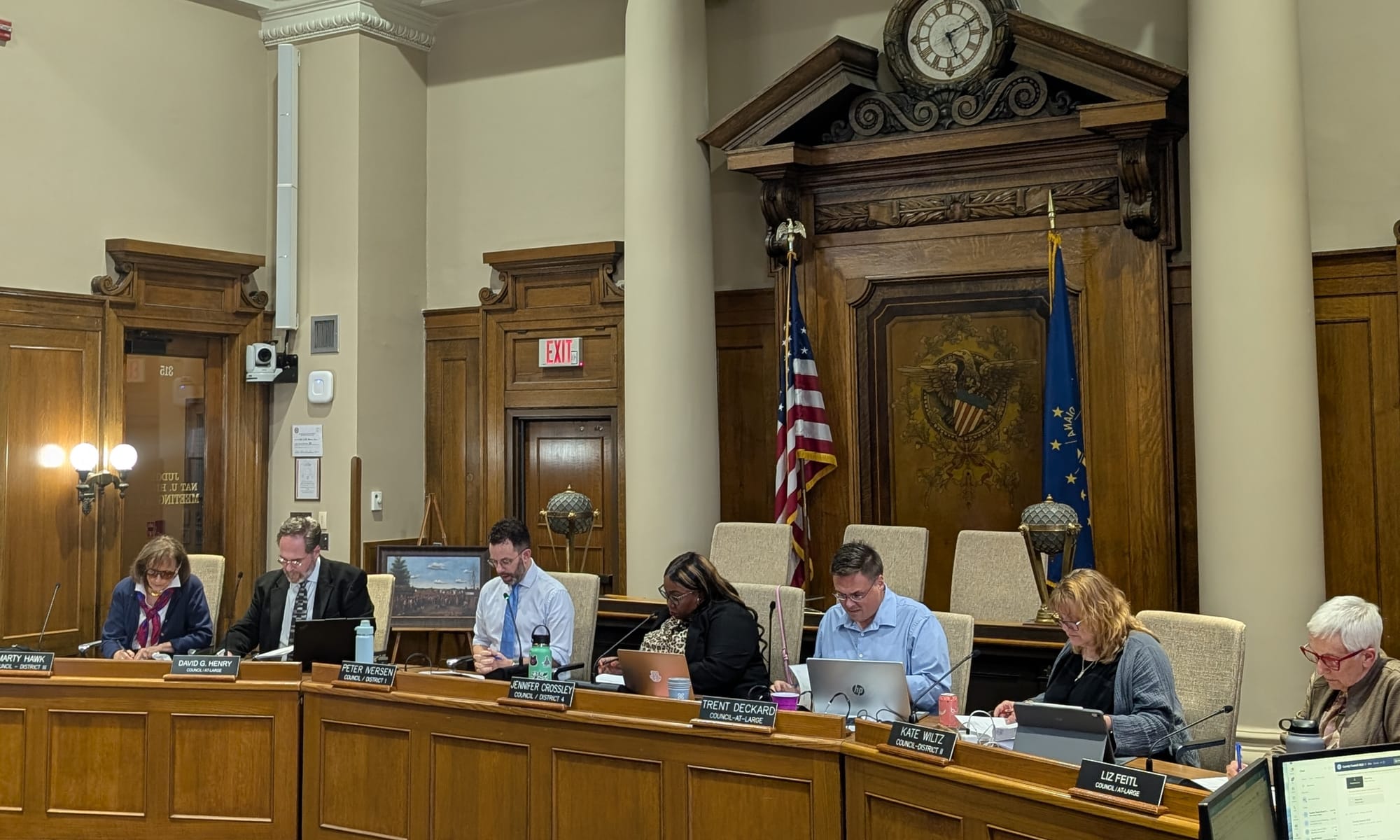 Council president Jennifer Crossley talked about the need for substantive partnership: “I urge our city council colleagues to not just talk about it, not just talking to me through a letter, but talk with us, join in this conversation.” That was an allusion to a letter, opposing the North Park purchase, which the Bloomington city council had sent to the county council. City councilmember Sydney Zulich, who had drafted the letter, read it aloud on Tuesday night from the public mic.