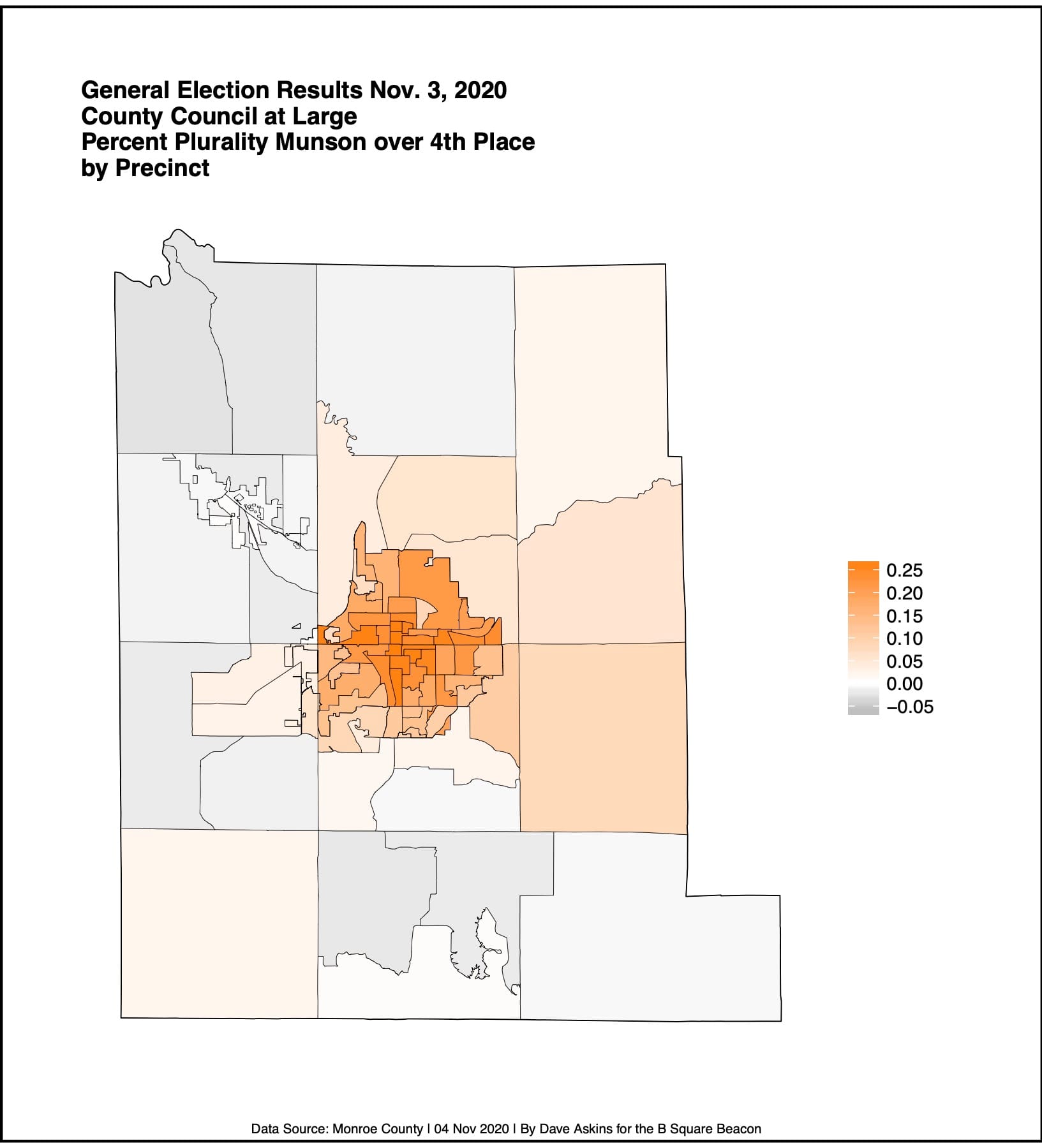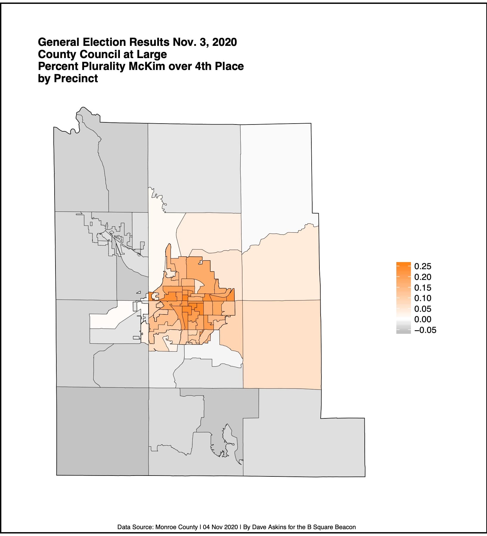 In the race for county council, Deckard led with 32,055 votes (24.5 percent). Munson tallied 31,918 votes (24.3 percent). McKim rounded out the top three spots with 28,797 votes (22 percent).