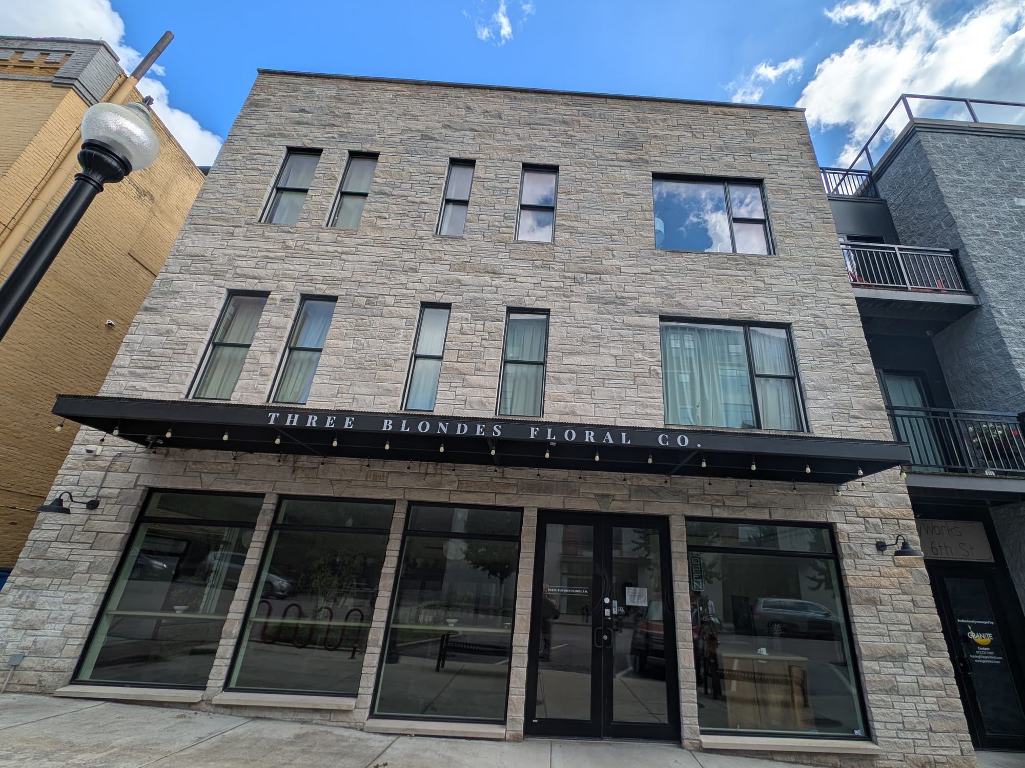 The building that housed the former Nourish Bar on 6th Street just west of the courthouse square is the future home of Three Blondes Floral Co. starting Aug. 1, 2025, according to the sign in the window.