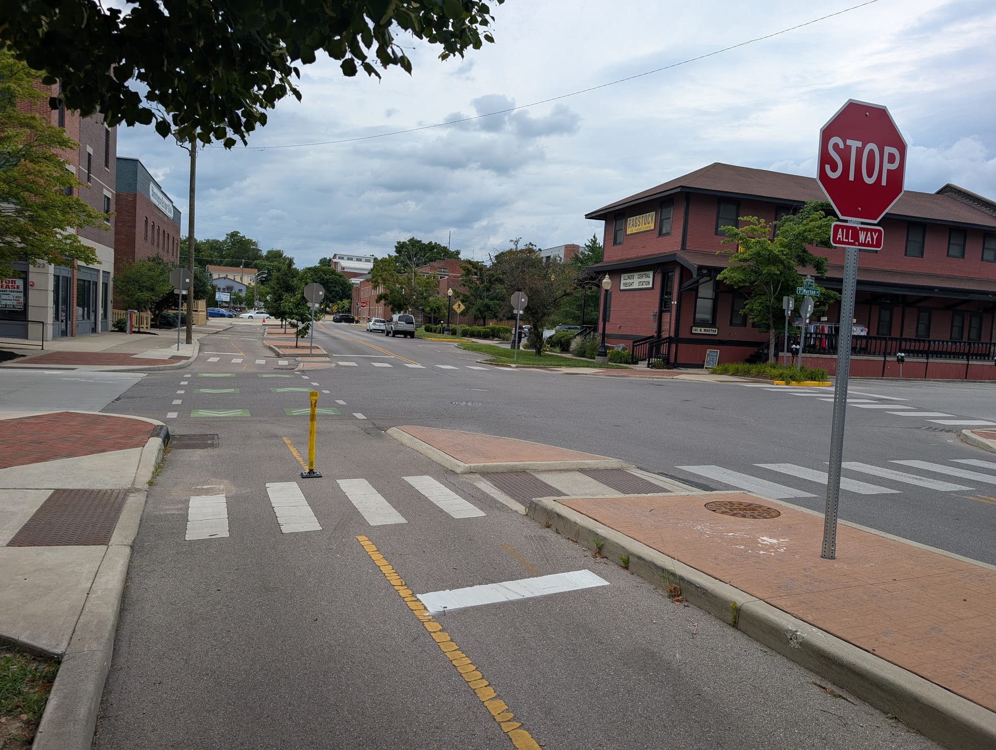 Stop bars for cyclists have been painted on the 7-Line separated bicycle lane, to go with the re-installed stop signs.