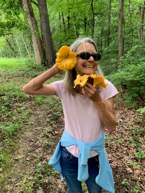 B There Near Griffy Lake Dam Sue, pictured, and Wendy, her photographer, with some of their large chanterelle mushroom forage. Sue, pictured, and Wendy, her photographer, with some of their large chanterelle mushroom forage. (John McDaniel, July 21, 2025)