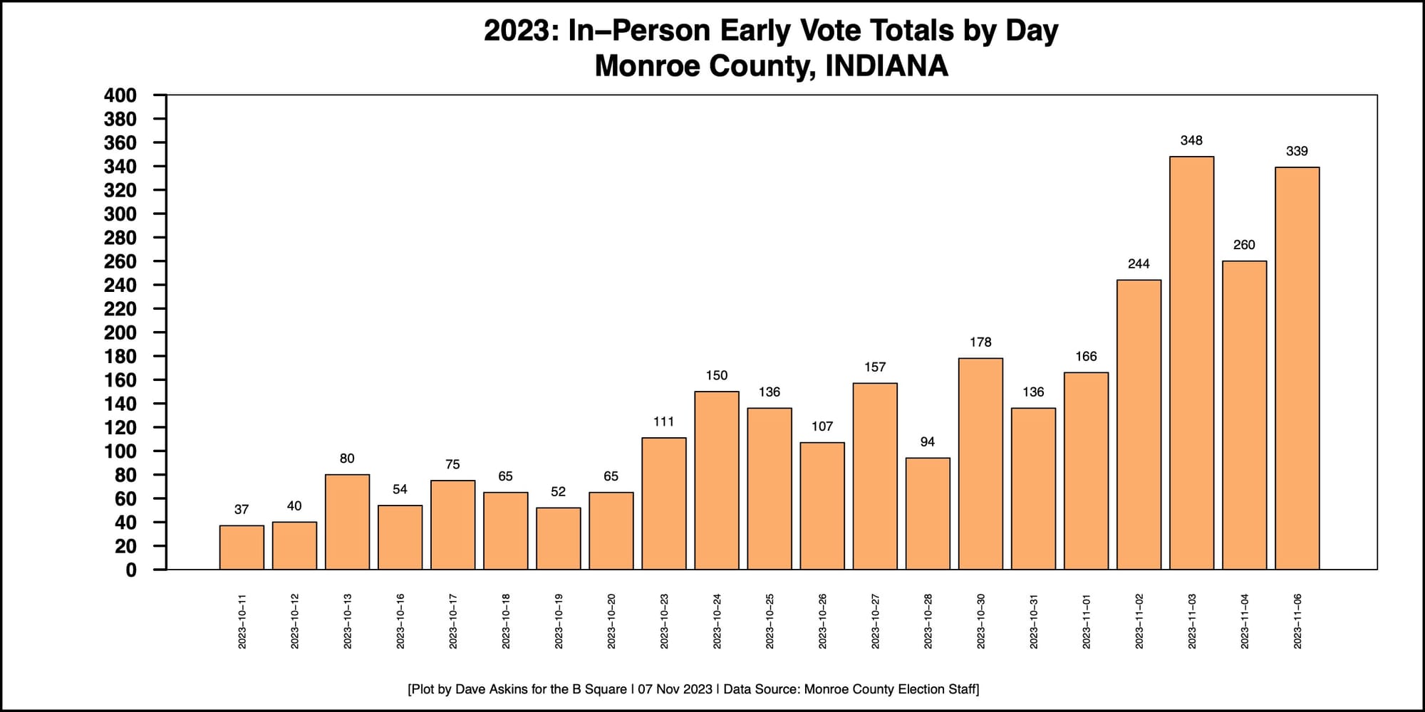 By way of comparison, for the May 2, 2023 primary election, about 3,150 people voted early in-person.