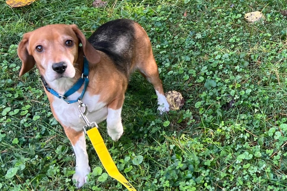 This very, very good boy is a beagle. I wonder if he knows how to sing that very, very famous song, “Highway to the Danger Bone.” Here’s what the shelter staff have written about Kenny Doggins: