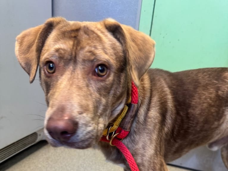 This very, very good boy a mix of Labrador retriever and Catahoula leopard dog. Here’s what the shelter staff have written about Trolley: