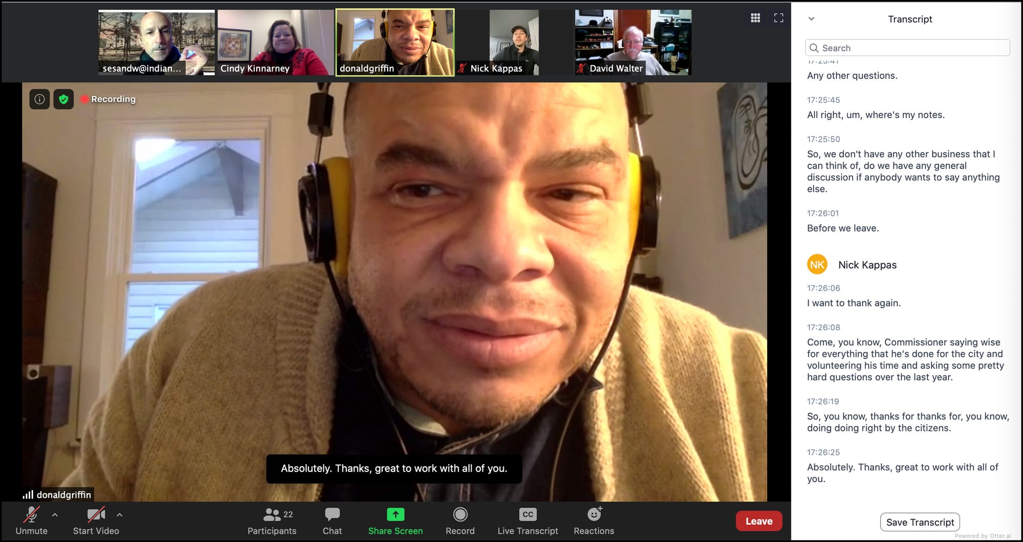 The following week, the regular press conference of local leaders about COVID-19 pandemic response also featured Zoom’s automatic closed captioning and transcription.