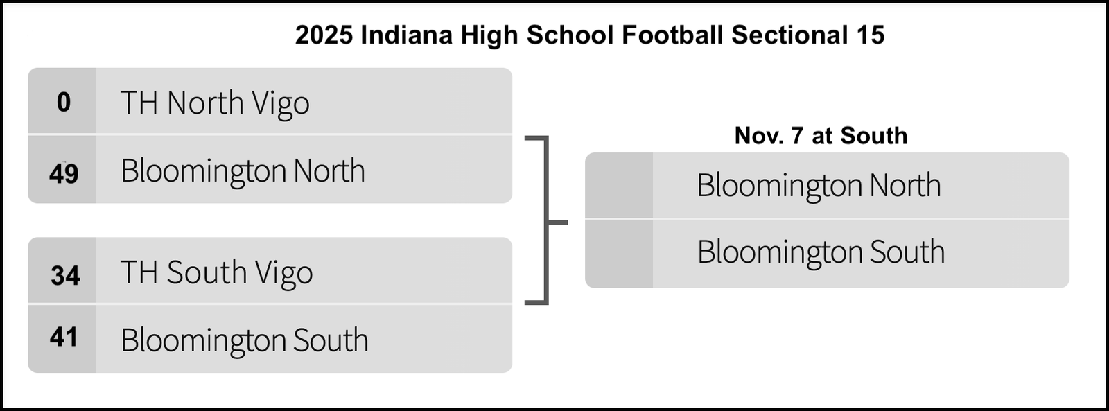 Bloomington South and Bloomington North meet again Friday night at Huff Field for the Class 5A Section 15 championship. South dominated their September game 36-7, but North has surged since, winning six straight. The city rivals now battle for a spot in the state tournament’s next round.