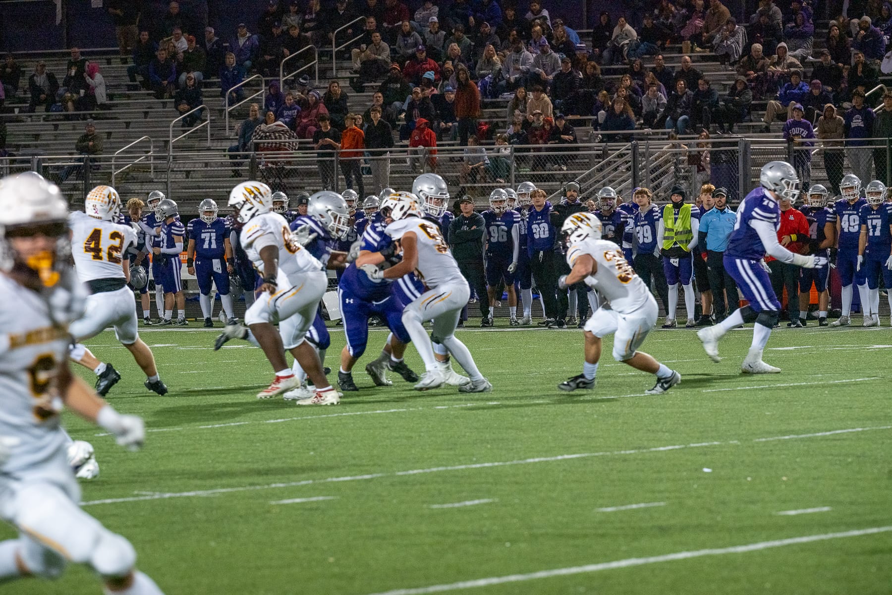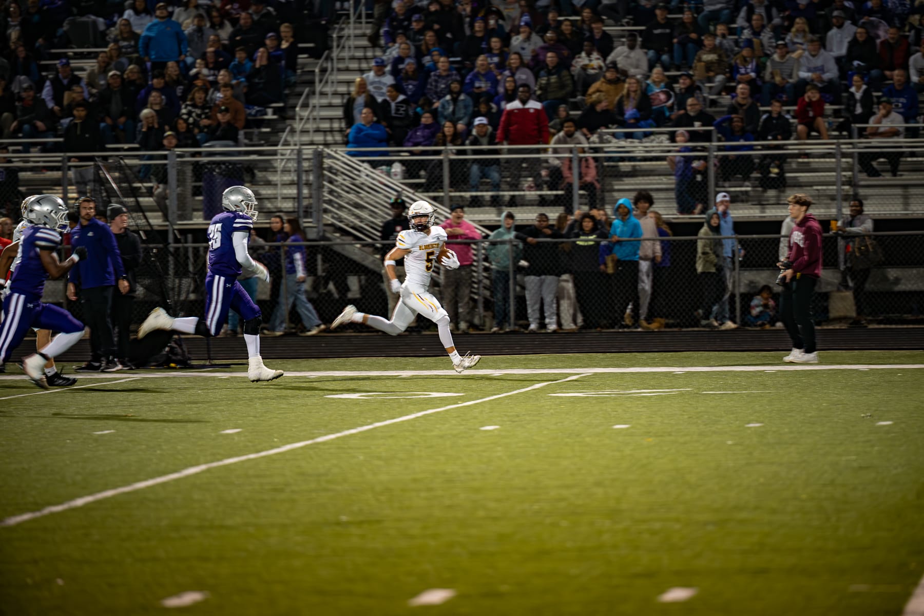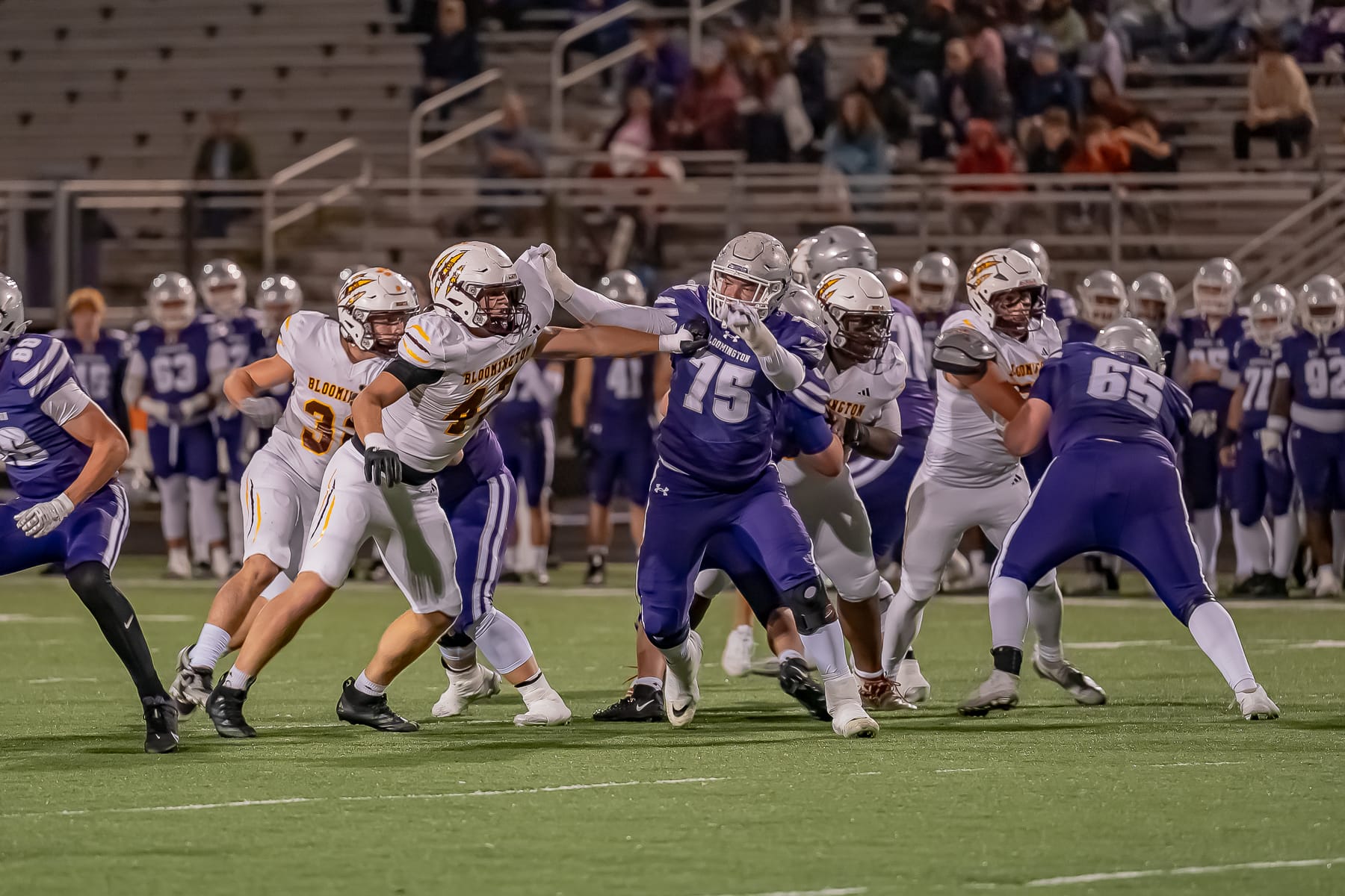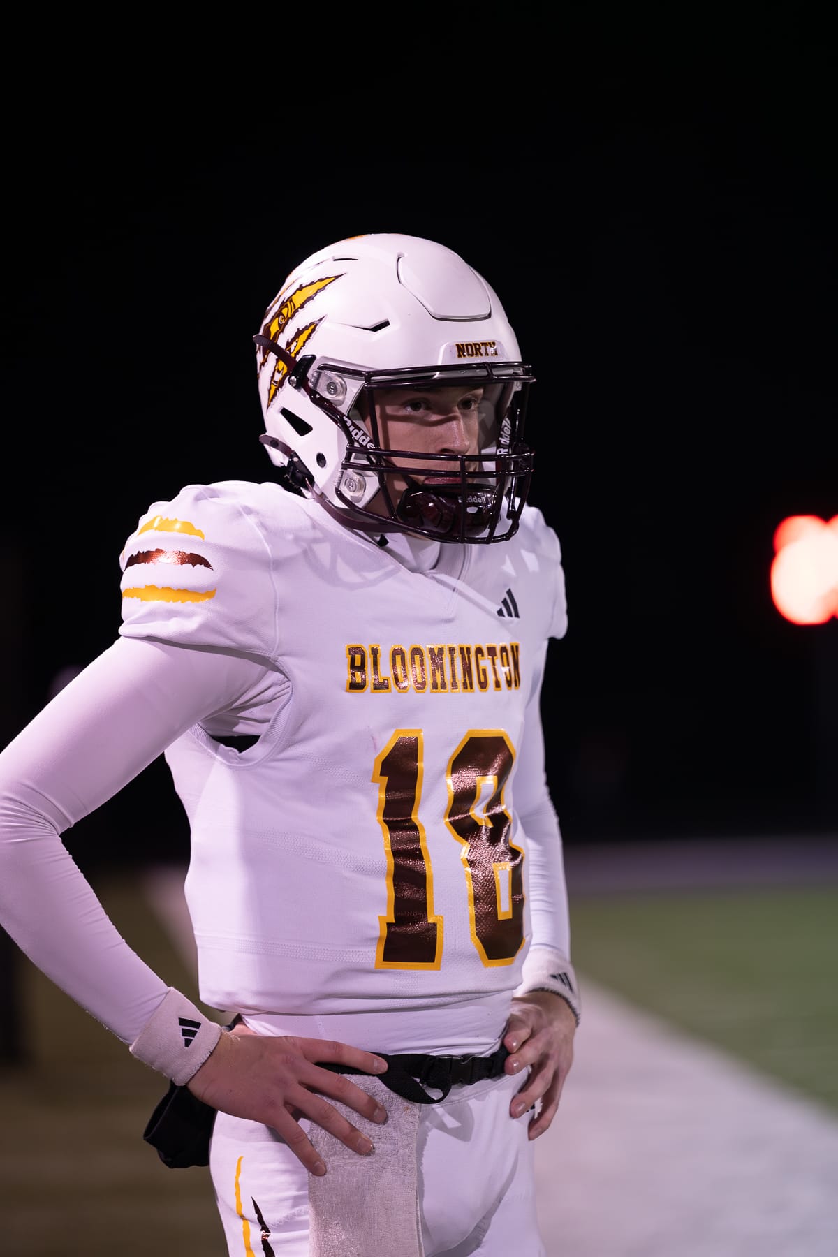 On the other side of Bloomington, Bloomington North was held to 249 total yards on offense. Senior quarterback John Bargen still had a productive night—going 16-of-25 for 188 yards and three passing touchdowns. But South snuffed out the rushing attack. The Cougars could only muster 61 yards on 18 carries, with junior running back Brayden Johnson getting 35 and sophomore running back Carter Matthew producing 32.