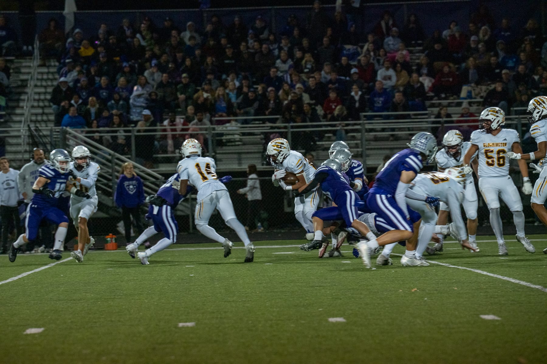 The back-and-forth battle continued into the fourth quarter. Bargen finished a 10-play, 76-yard drive with a 1-yard passing touchdown to junior wide receiver Nathan Walker (3 rec, 19 yds, 1 TD). Combs responded by finding Williams for a 9-yard score on a 12-play, 56-yard possession to make it a 28-21 game in North’s favor.