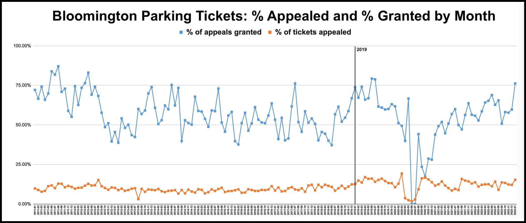 So far this year about 15 percent of tickets have been appealed. In January, about 75 percent of appeals were granted.