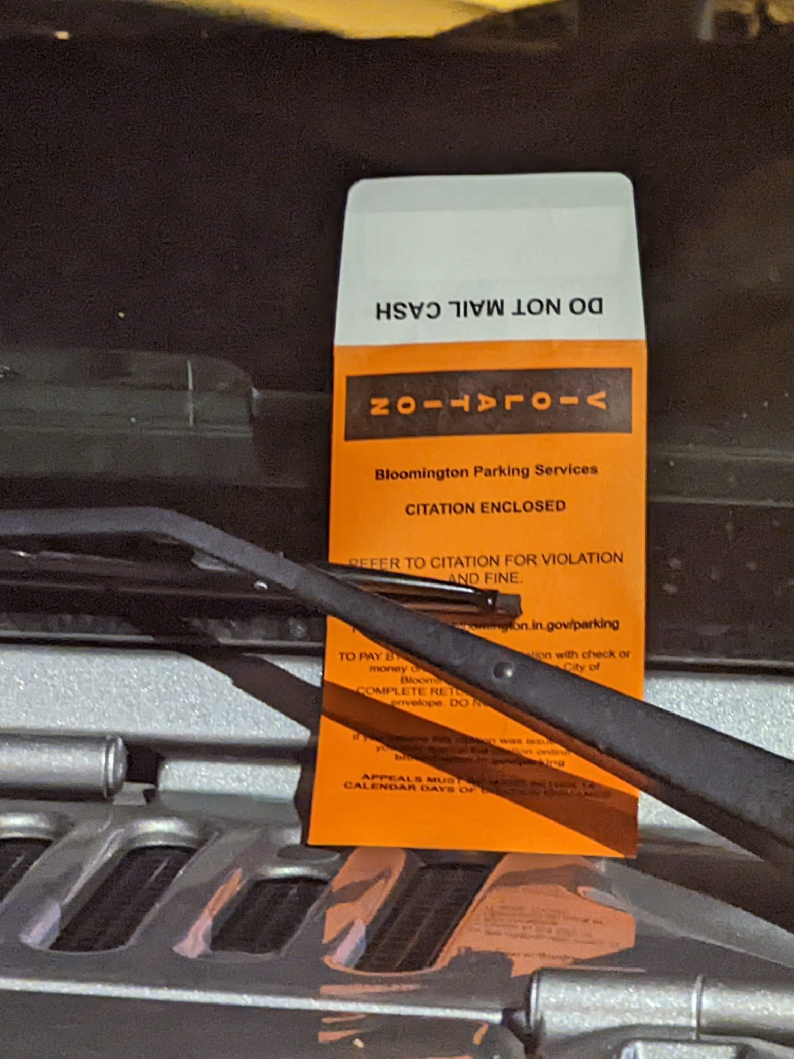 Anecdotally, the number of parking tickets visible on windshields in downtown Bloomington over the last couple of months has increased.