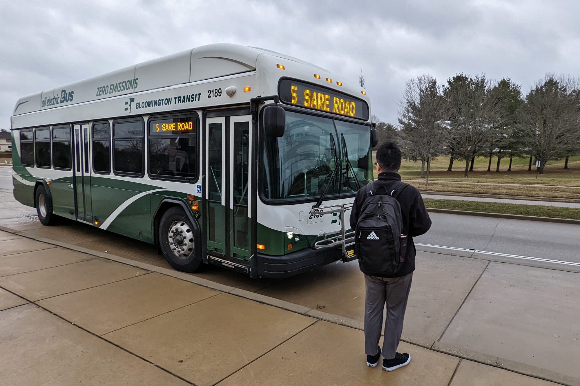 The vehicle that Reynolds was driving on Friday has the serial number 21-89—it’s one of Bloomington Transit’s new battery-electric vehicles, which has no internal combustion engine.