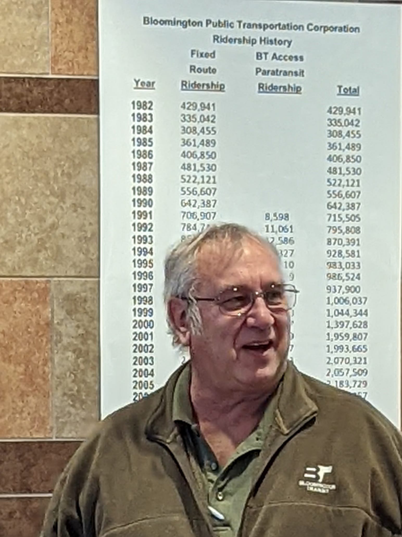 His first day at the wheel of a Bloomington public bus came 43 years ago on June 2, 1979. At that time, the bus service was provided through a city department, before the Bloomington Public Transportation Corporation was established.