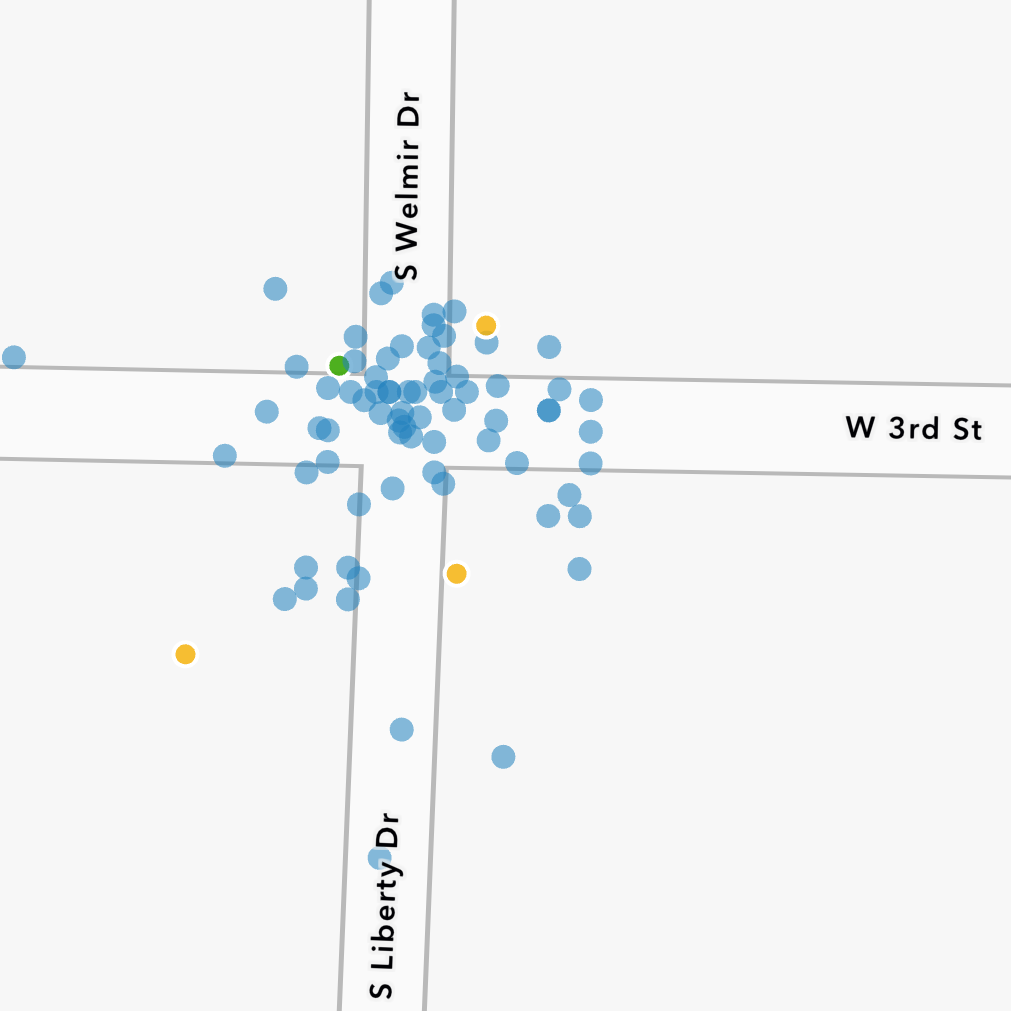 Based on numbers from the city of Bloomington’s crash dashboard, over the last six years, from 2019 to 2024, there have been around 77 crashes at the intersection, none of them fatal. Of the 77 crashes, 20 of them injured at least one person and four of them caused someone a serious injury.