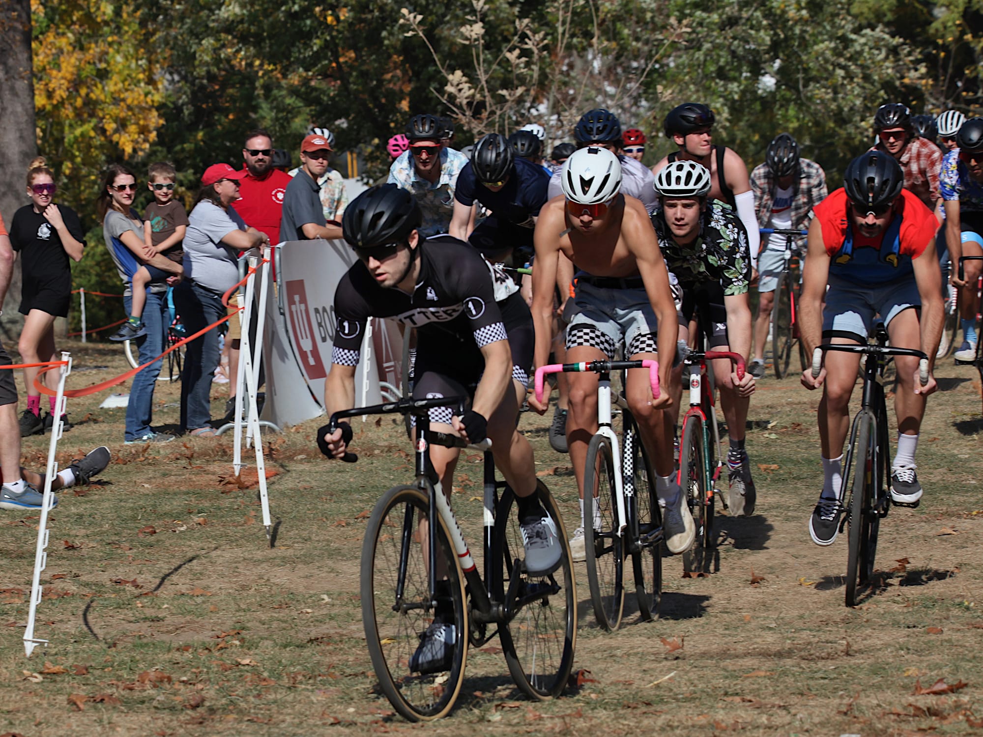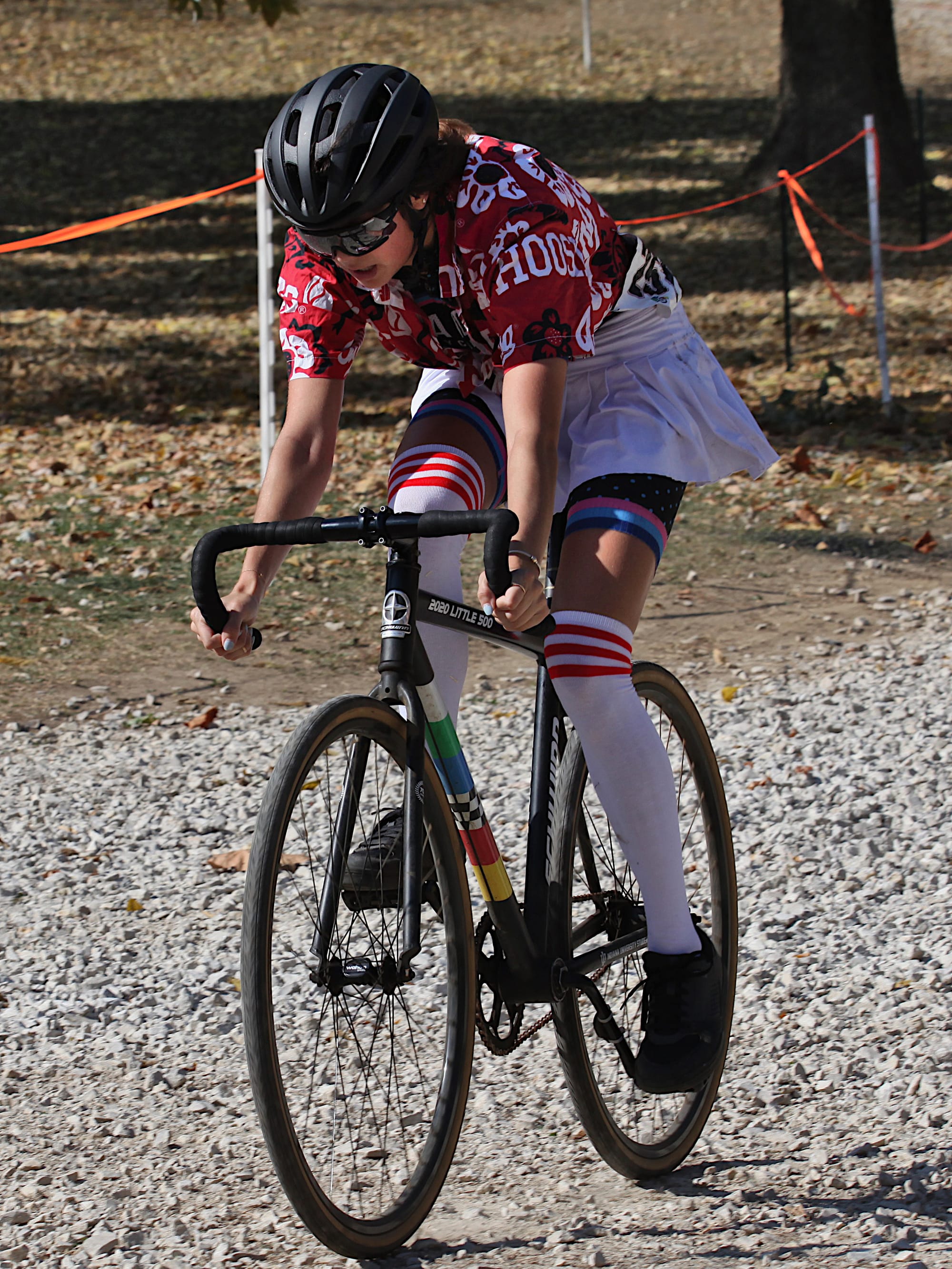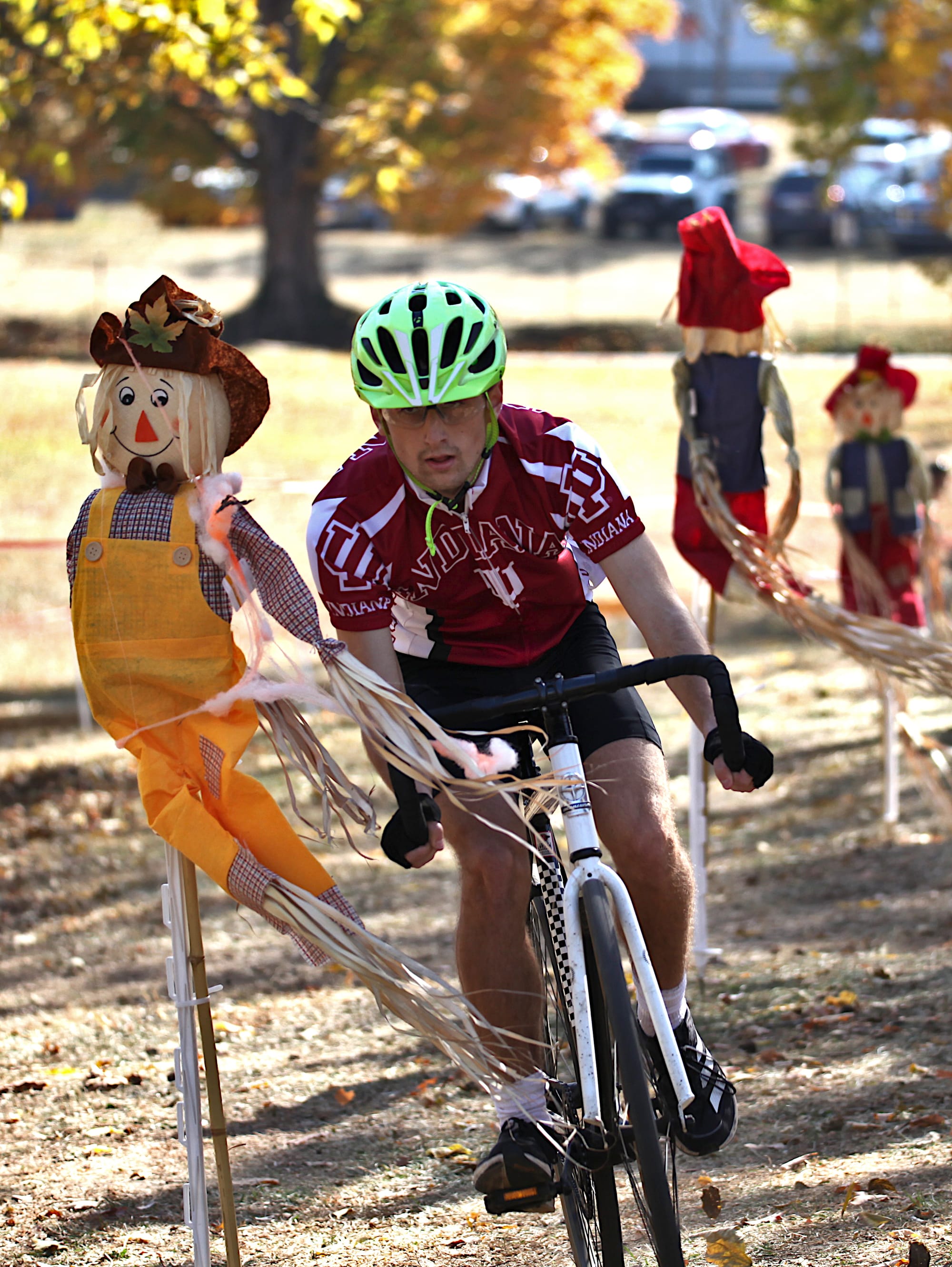 But on the second-to-last Sunday in October, riders pedaled standard issue Little 5 machines up, down and around a cyclocross course laid out on the tailgate grounds south of the Indiana Memorial football stadium.