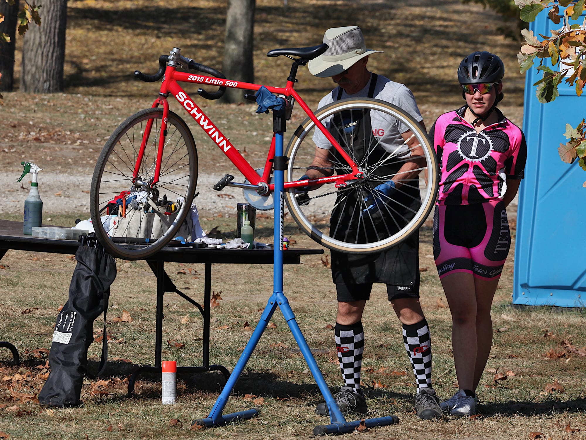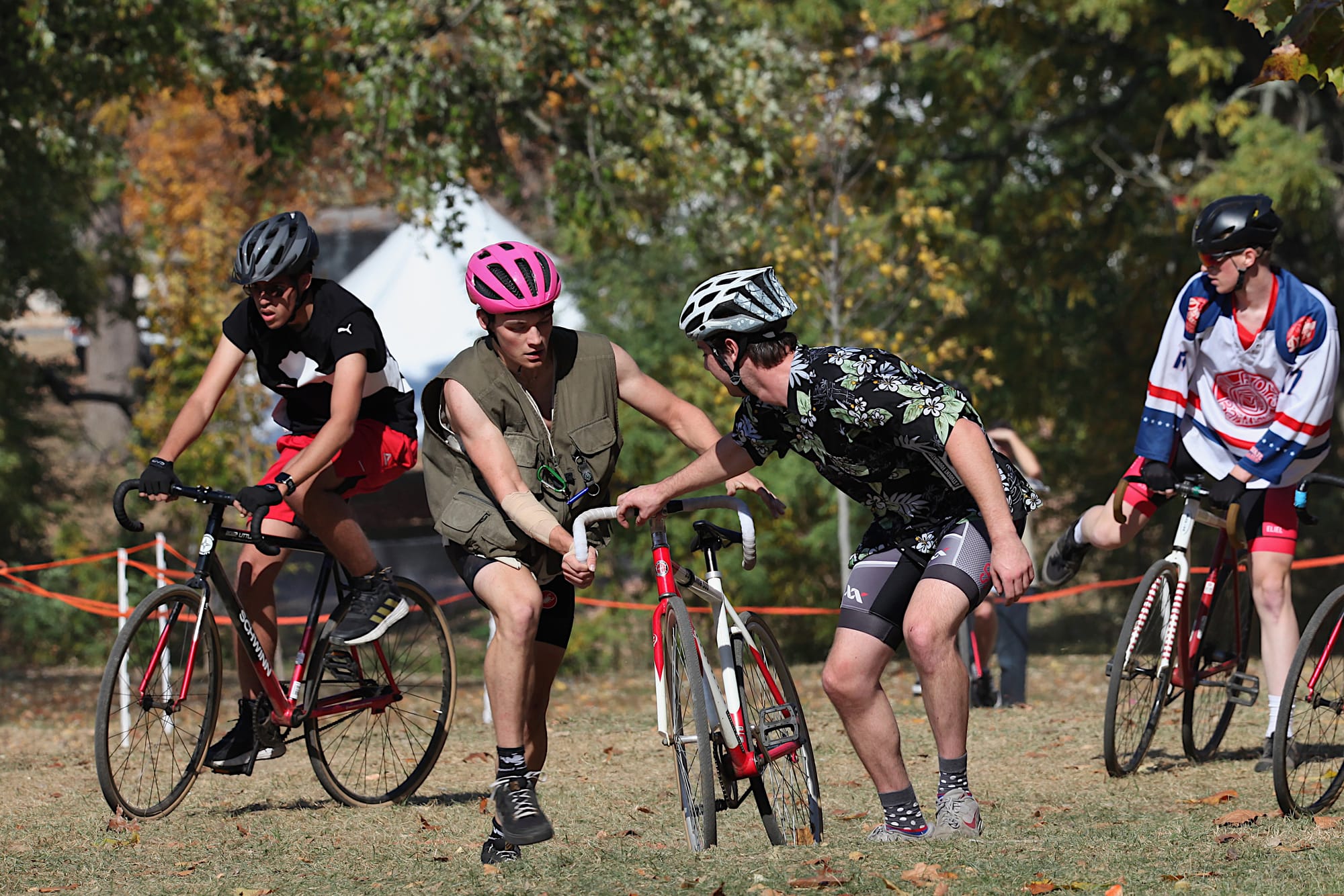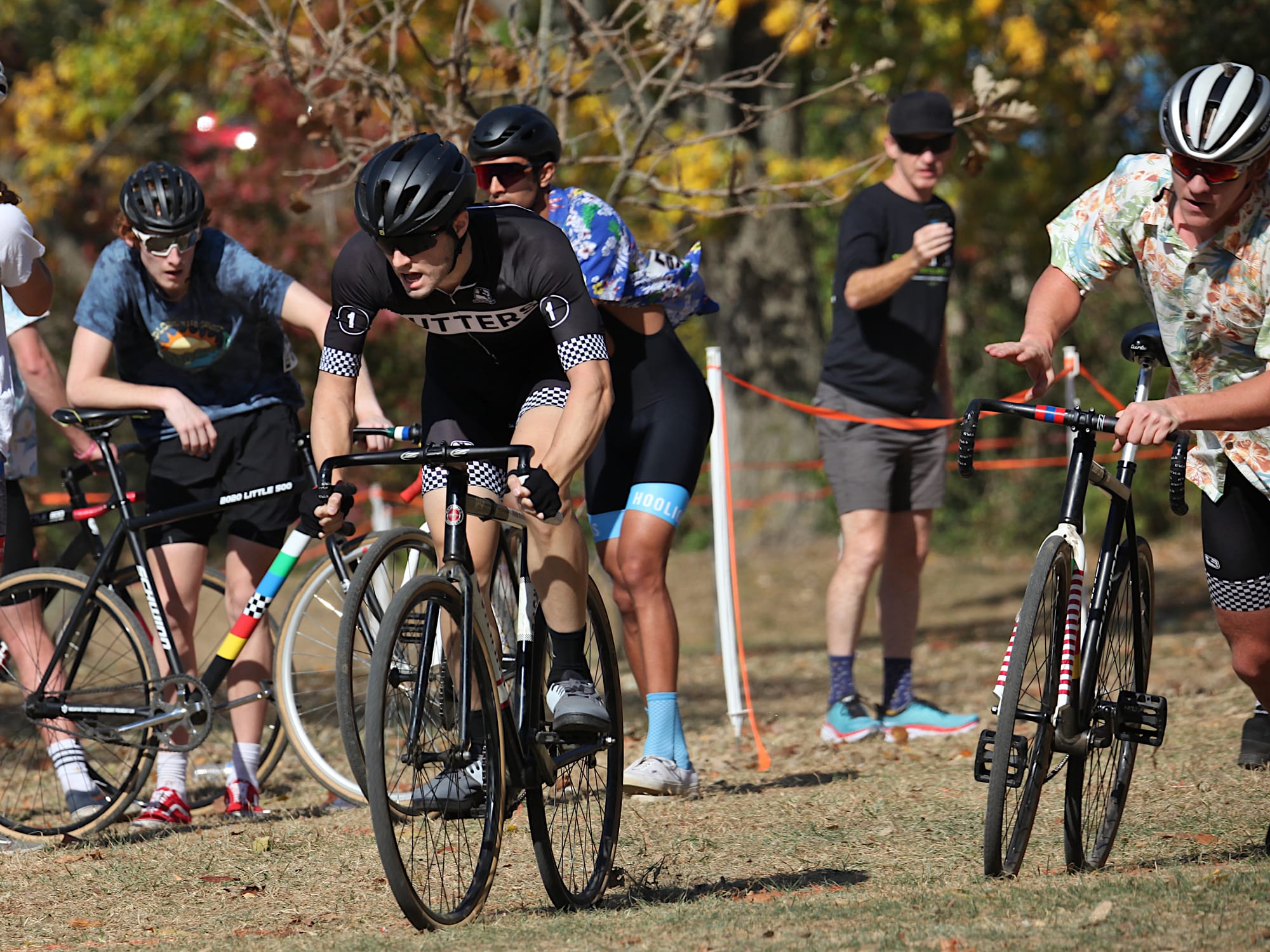 But on the second-to-last Sunday in October, riders pedaled standard issue Little 5 machines up, down and around a cyclocross course laid out on the tailgate grounds south of the Indiana Memorial football stadium.