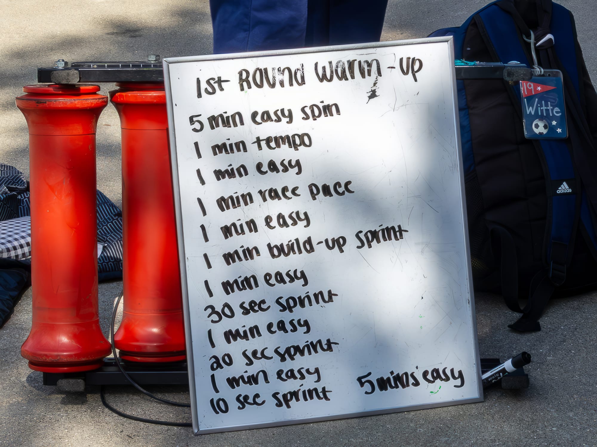 On Friday (April 11, 2025), the previously rained out running of this year's Miss N Out competition was held. The idea of Miss N Out is not necessarily to be first across the finish line in a heat of 6–12 riders. The idea is just to survive to the next lap—by not being the last rider to have their front tire cross the start/finish line. The last rider "misses" and they are "out." The final three riders of each first-round heat go on to the next round. Eventually a championship heat of three riders is reached. In the championship heat, the rider to have their front tire cross the start/finish line first is declared champion.