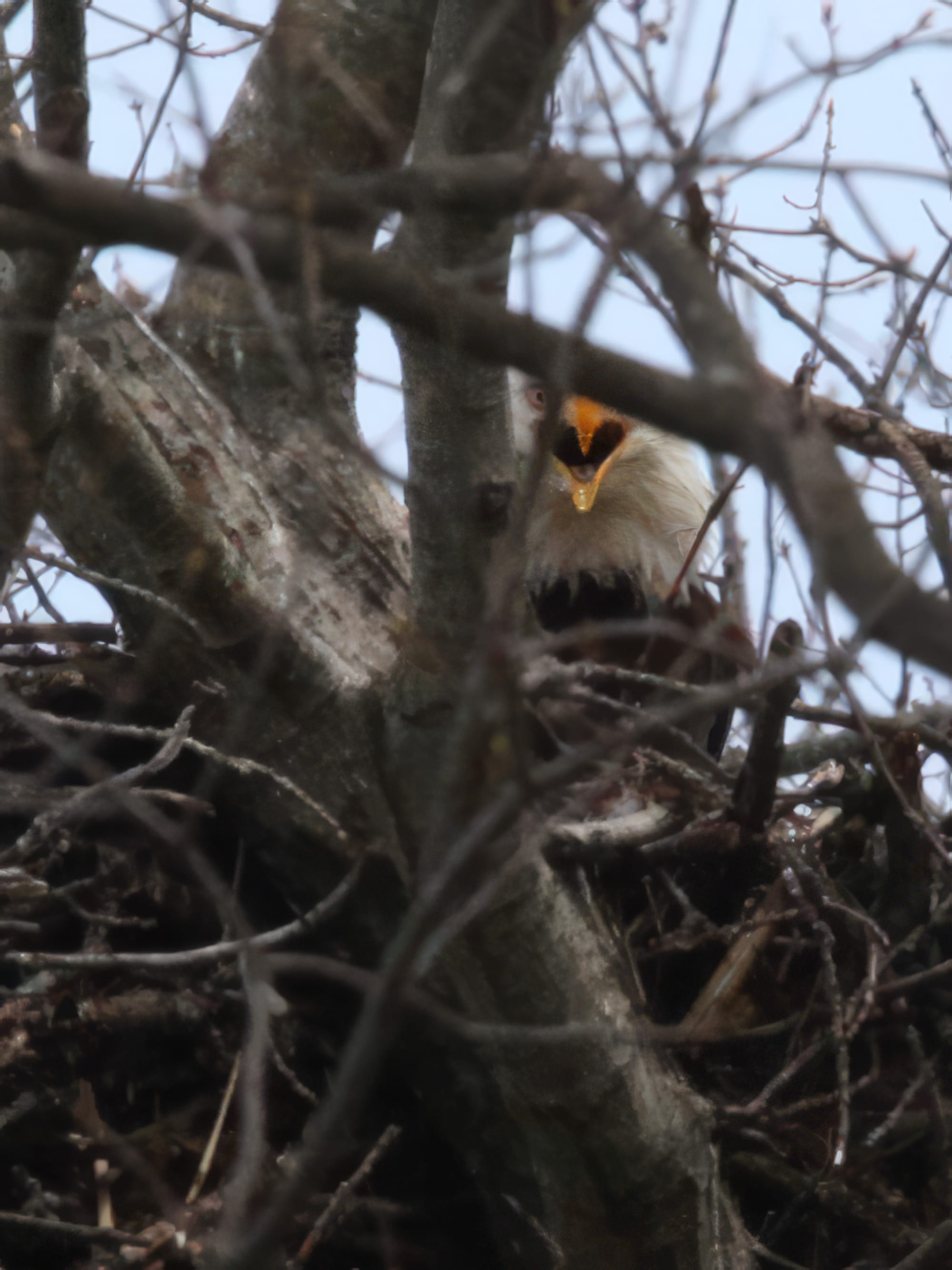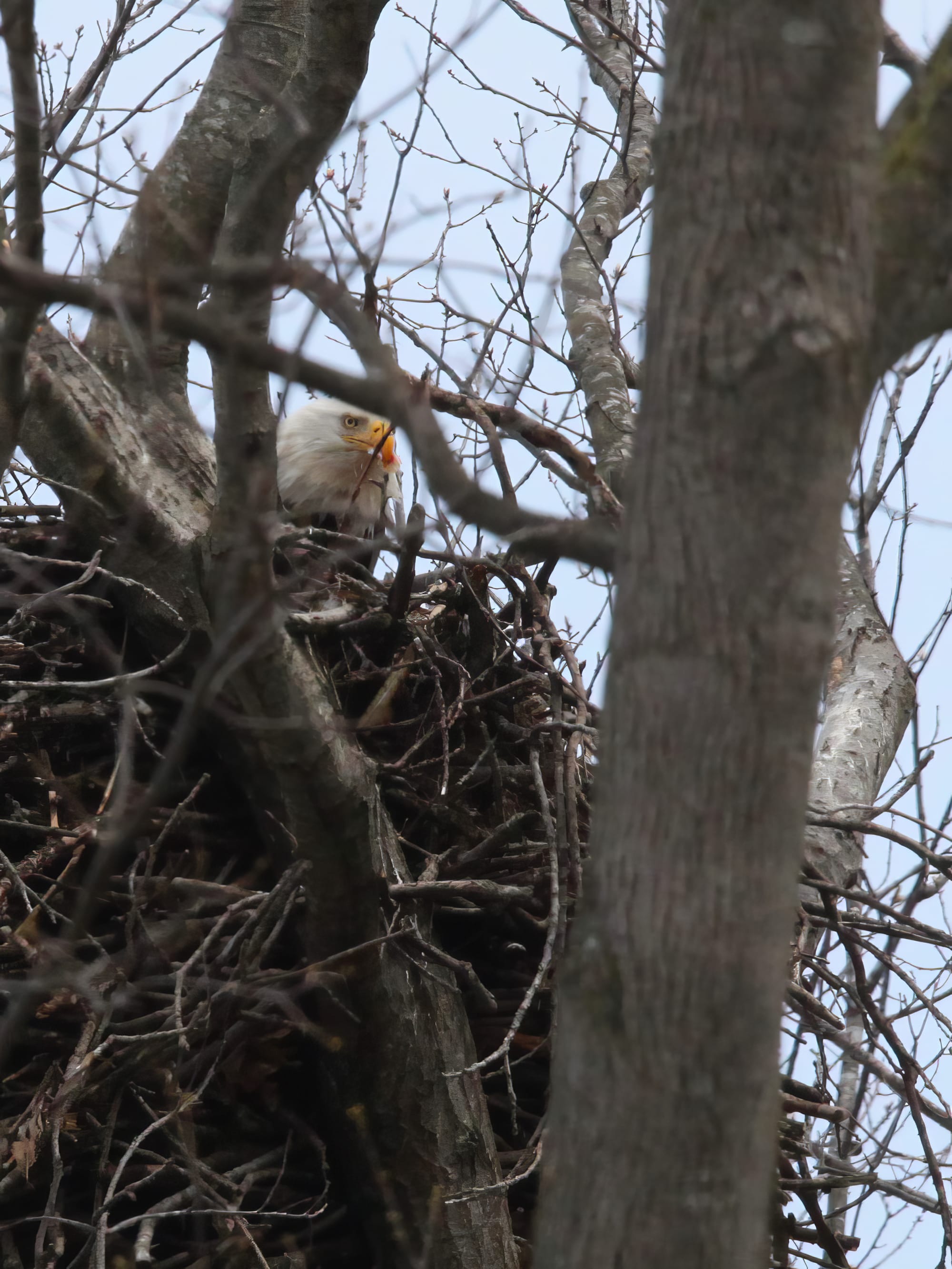 Over the weekend, The B Square Bulletin was able to confirm what appears to be an active nest about a half hour’s drive north of Bloomington. It will soon be obscured by the tree leaves, which are now just budding out.