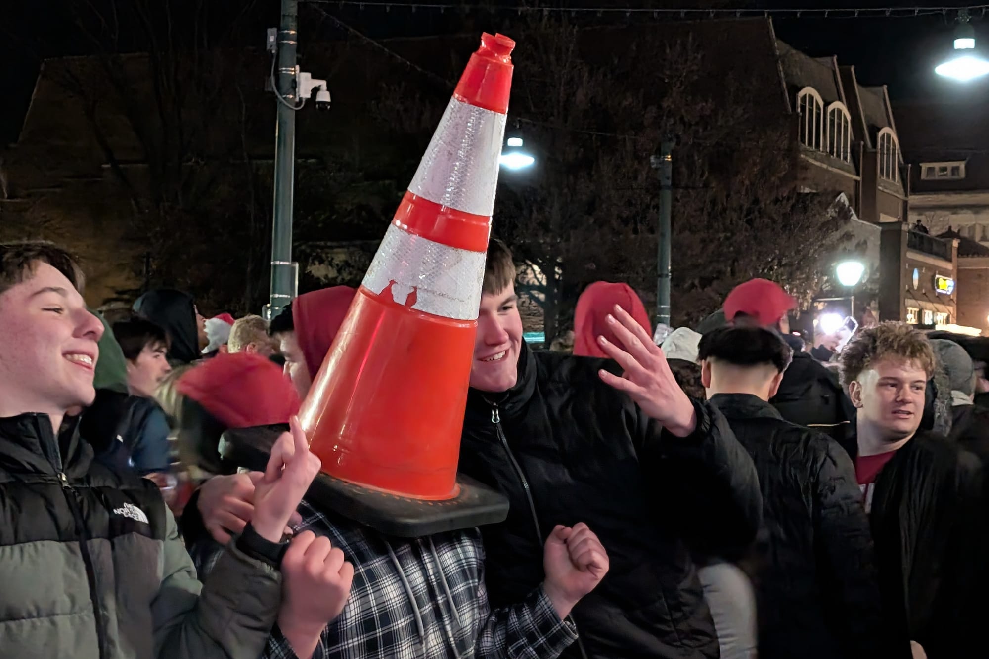 Celebration in street as game neared end. (Dave Askins, Jan. 19, 2026)