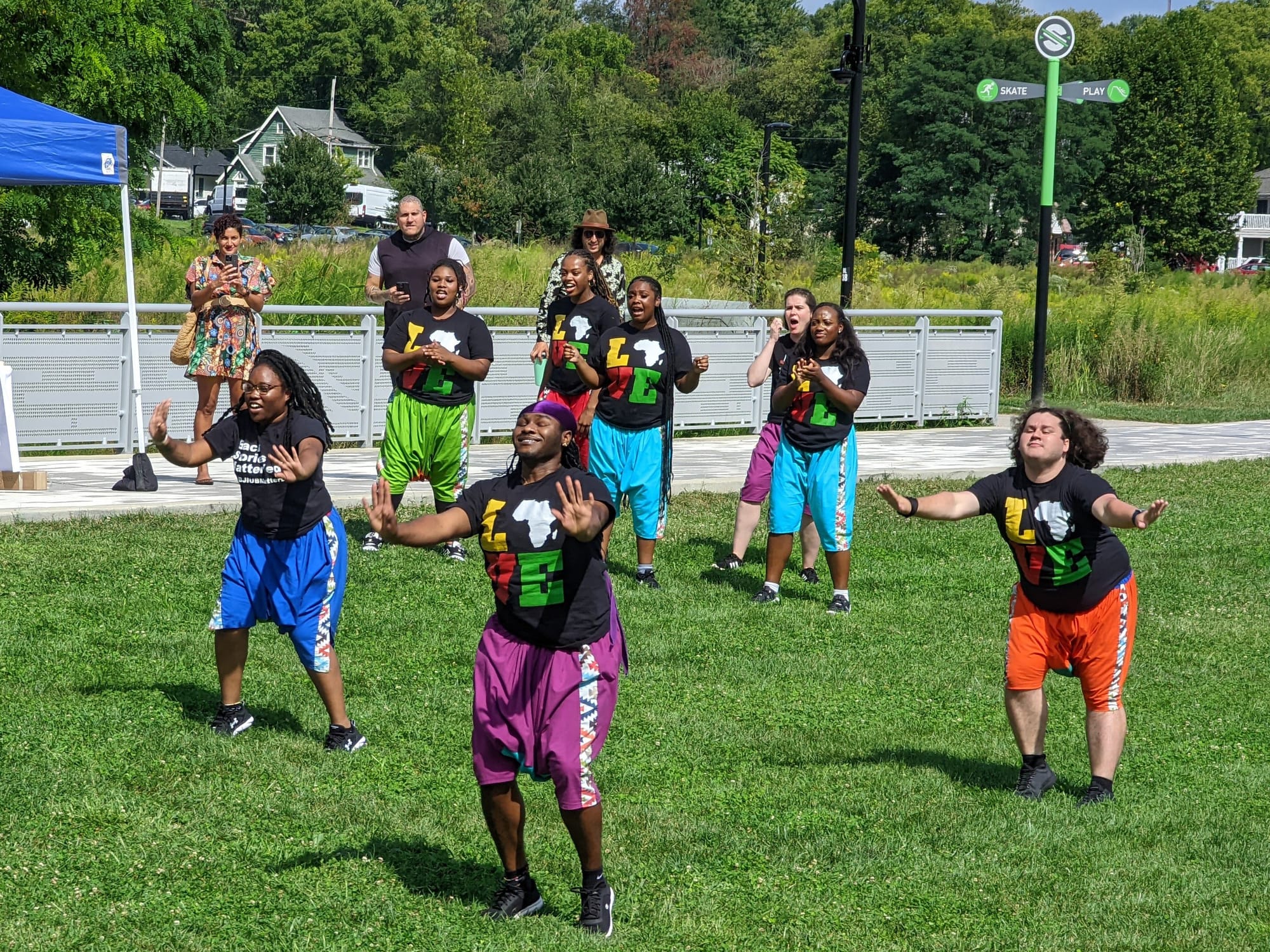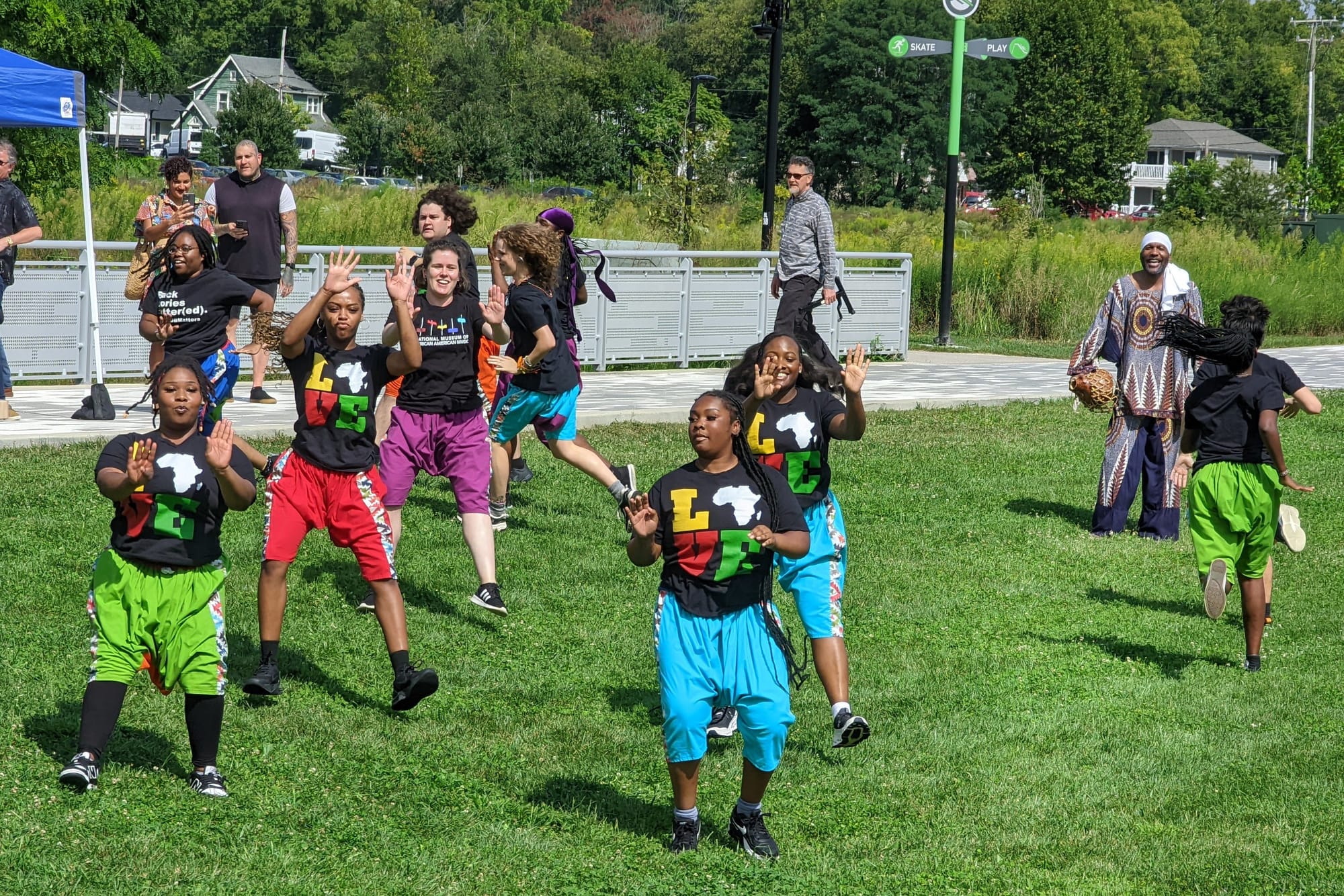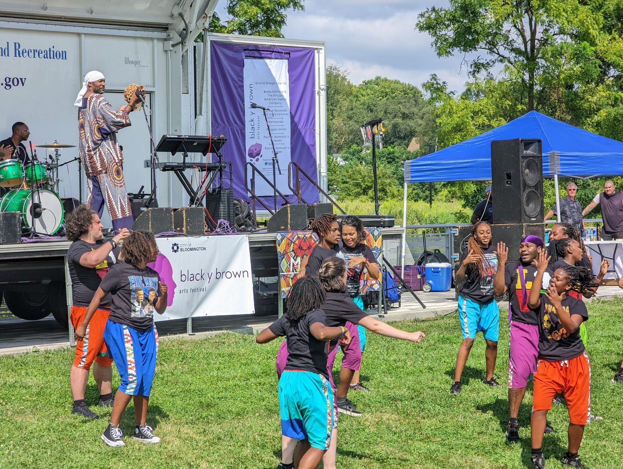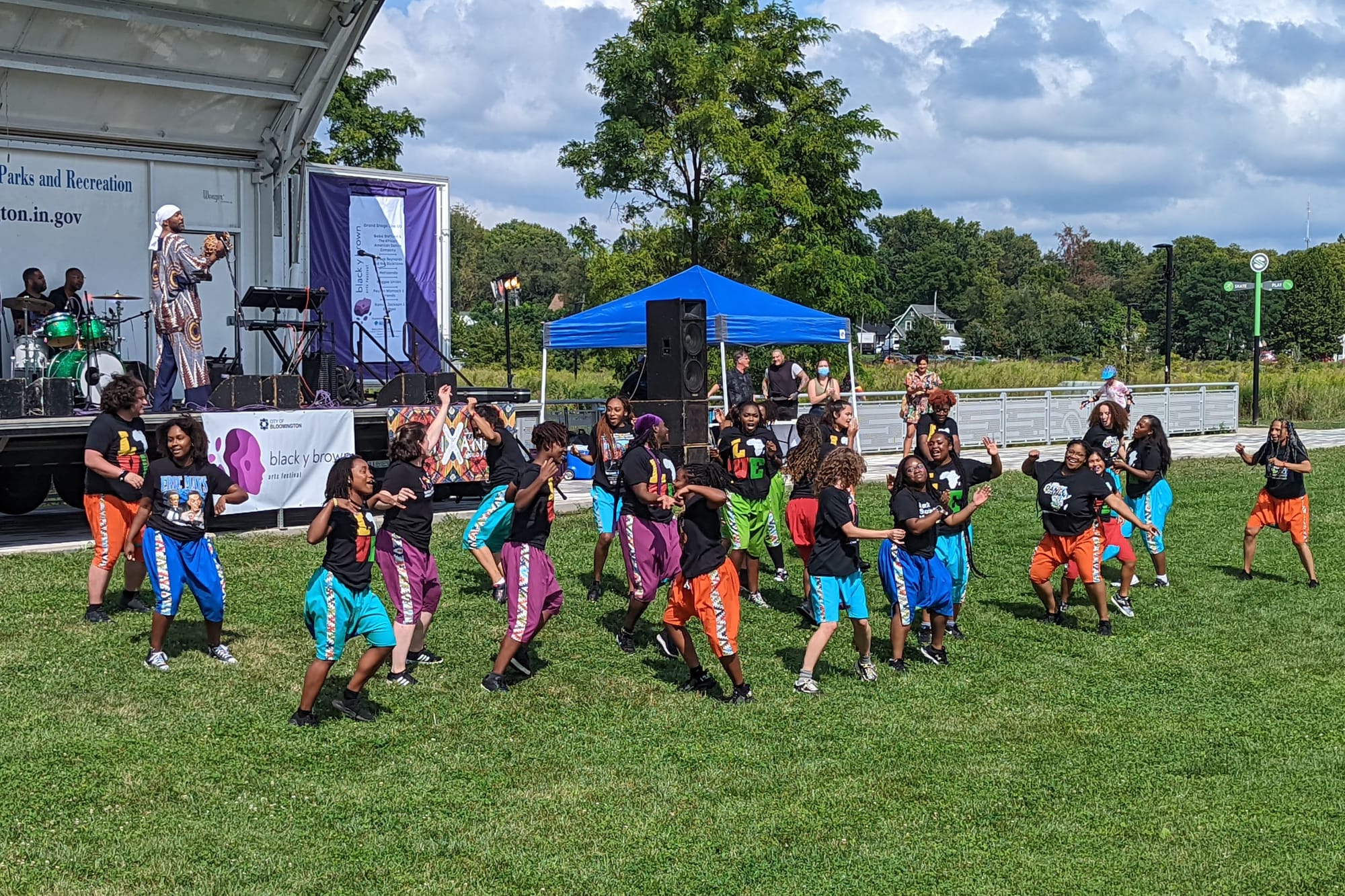 Baba Stafford told the crowd at Switchyard Park that the dance company has been a part of the city of Bloomington’s Black y Brown Festival since the start.