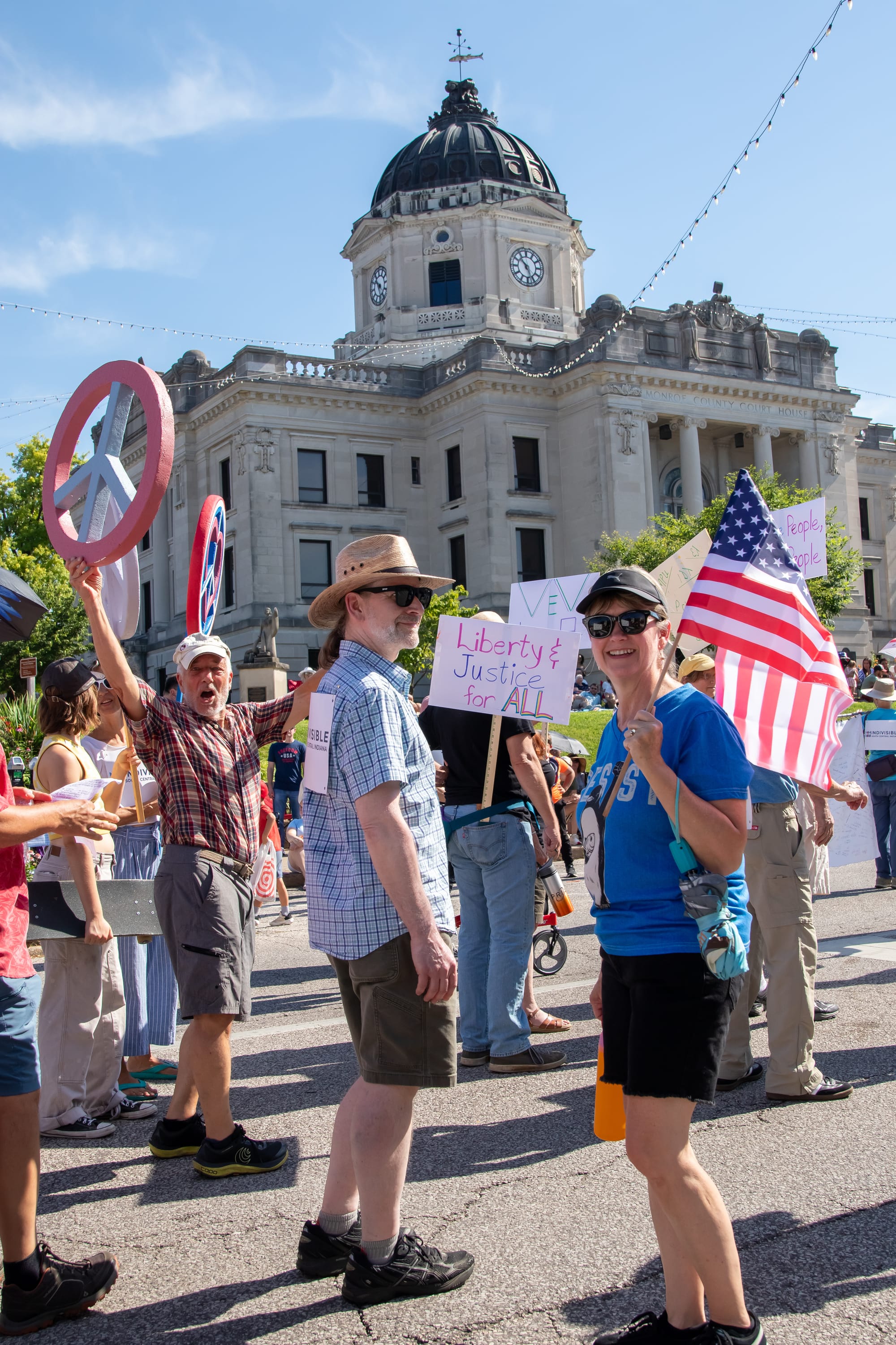 Bloomington’s Fourth of July Parade took place on Friday morning, starting promptly at 10 a.m. By that time, the temperature had already climbed to 83°F. Cheerleaders, bicyclists, political groups, and families were out in force. The parade course wound down College Avenue across Kirkwood Avenue and back up Walnut Street. Photographer Juliette Kniola was out along the route to capture these images.