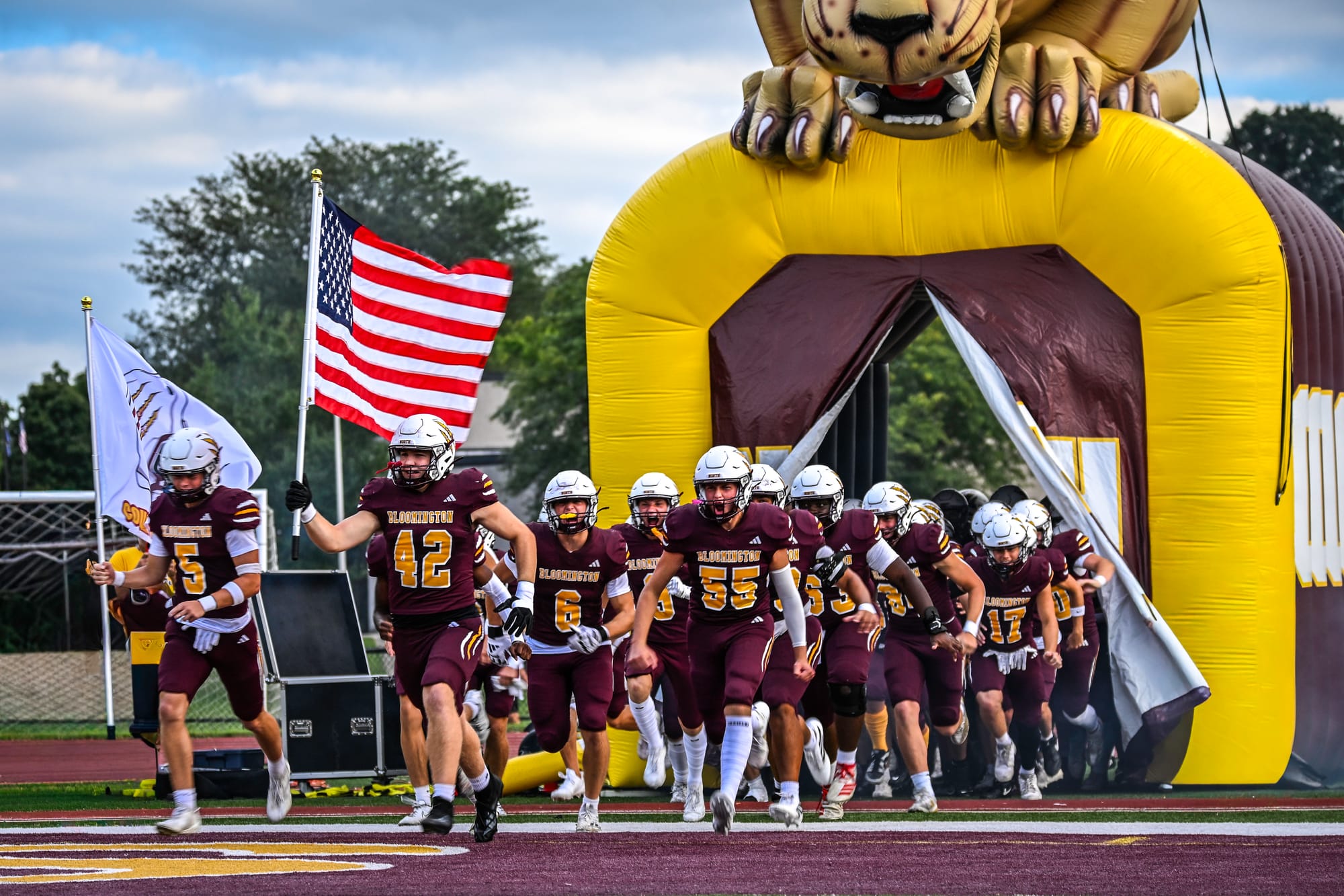 The Bloomington North Cougars storm onto the field. (Amy Mason, Aug. 23, 2025)