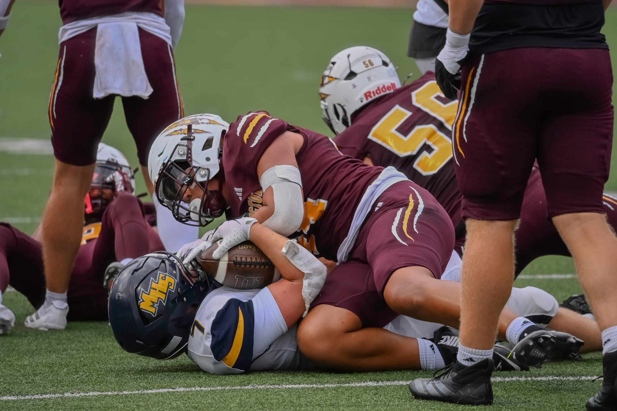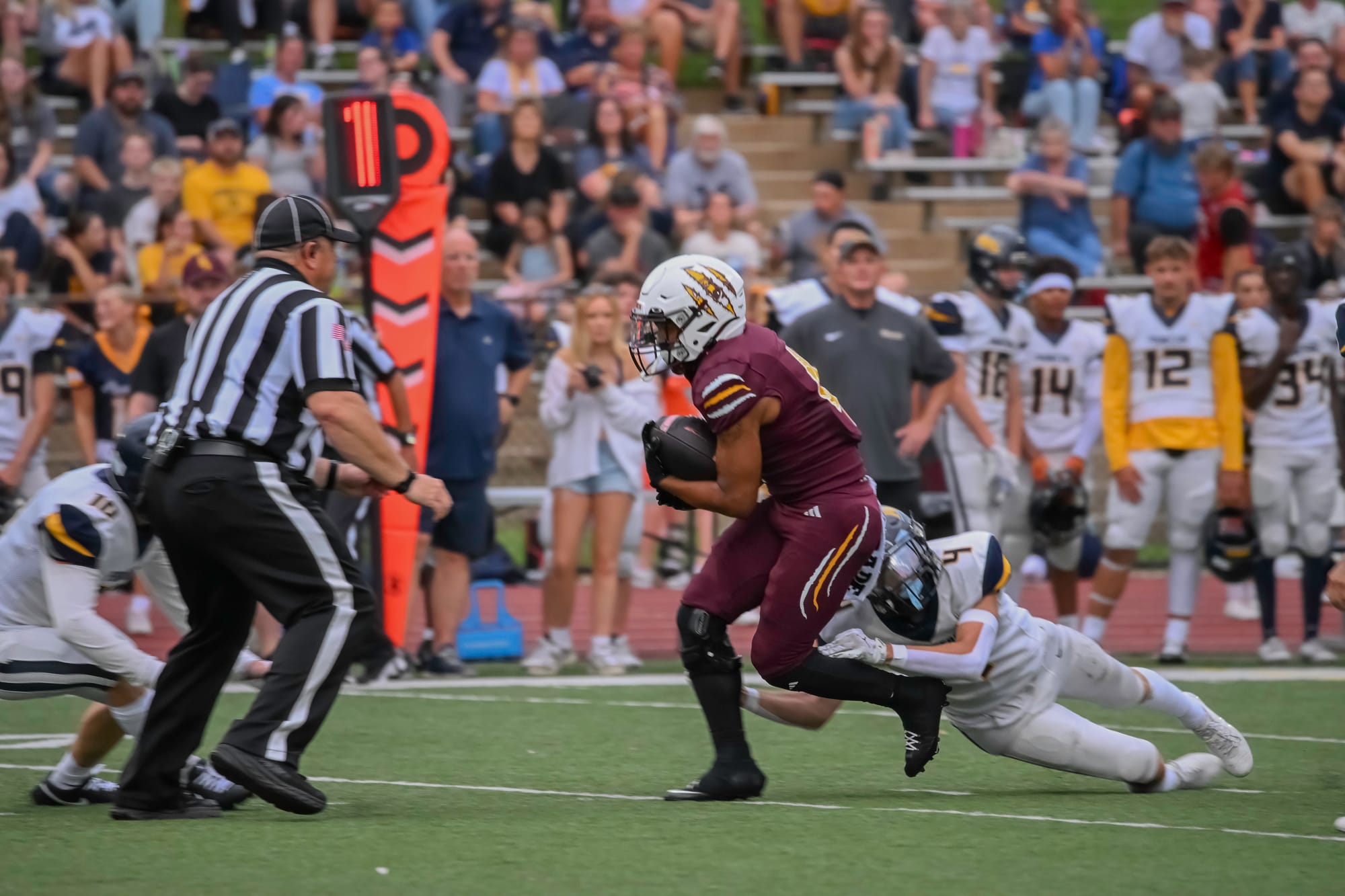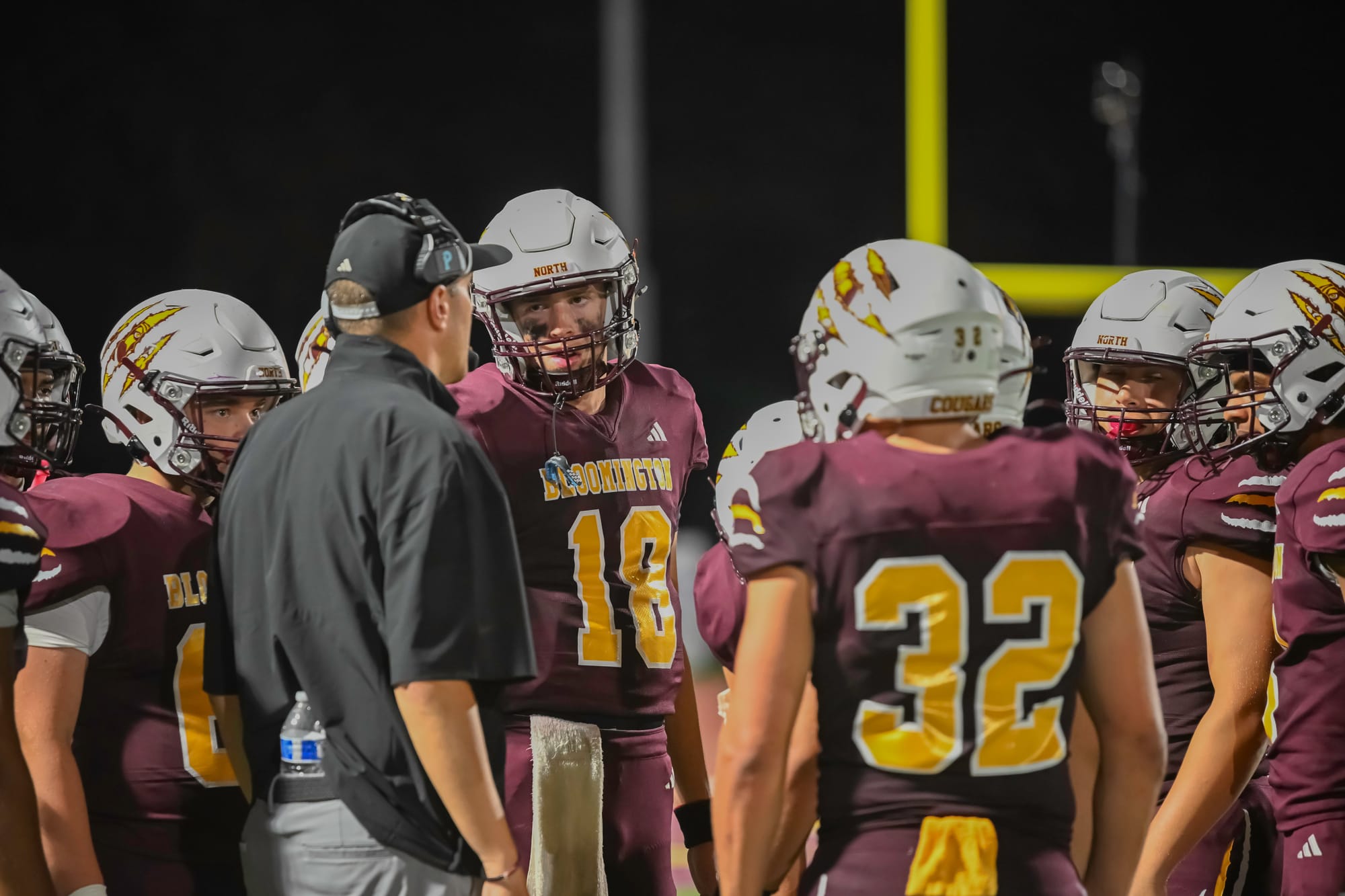 Cougar quarterback John Bargen (18) launches the ball down the field. (Amy Mason, Aug. 23, 2025)The Mooresville ball carrier gets tackled by Cougars. (Amy Mason, Aug. 23, 2025)Bloomington High School South versus Mooresville. (Amy Mason, Aug. 23, 2025)Luke Freel (5) celebrates a touchdown for the Cougars. (Amy Mason, Aug. 23, 2025)Bloomington High School South versus Mooresville. (Amy Mason, Aug. 23, 2025)Bloomington North coach Brett Cooper gets perspective from his dad, Robin Cooper, former college football coach at the University of Evansville. (Amy Mason, Aug. 23, 2025)Sophomore Carter Matthew (22) runs the ball for the Cougars. (Amy Mason, Aug. 23, 2025)Brayden Johnson (4) runs the ball for the Cougars. (Amy Mason, Aug. 23, 2025)Cougars struggle to stop Hogan Denny (1) a three-sport standout for Mooresville. (Amy Mason, Aug. 23, 2025)Bloomington High School North versus Mooresville. (Amy Mason, Aug. 23, 2025)Cougar quarterback John Bargen talks with coach Brett Cooper on the sidelines. (Amy Mason, Aug. 23, 2025)Cougar senior Ryan McCall (55) takes a break from the game to direct the marching band. McCall has played football and marched in the band all four years of high school culminating with being named drum major. (Amy Mason, Aug. 23, 2025)(Amy Mason, Aug. 23, 2025)The Cougar defense crambles after the ball carrier for Mooresville. (Amy Mason, Aug. 23, 2025)Rashon English (3) is all smiles after a touchdown. (Amy Mason, Aug. 23, 2025)Bloomington High School North versus Mooresville. (Amy Mason, Aug. 23, 2025)Coach Brett Cooper addresses the team after the game. (Amy Mason, Aug. 23, 2025)