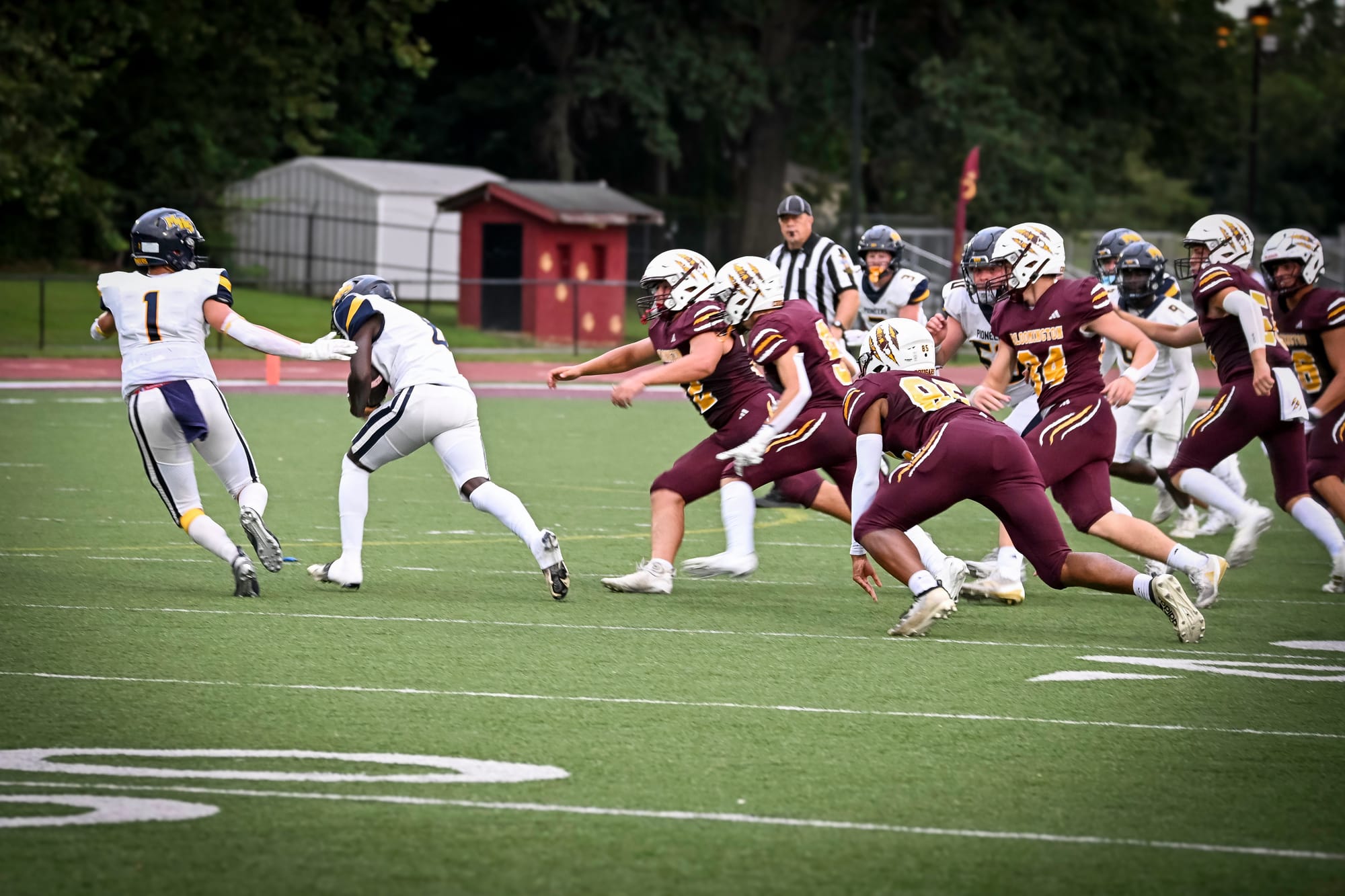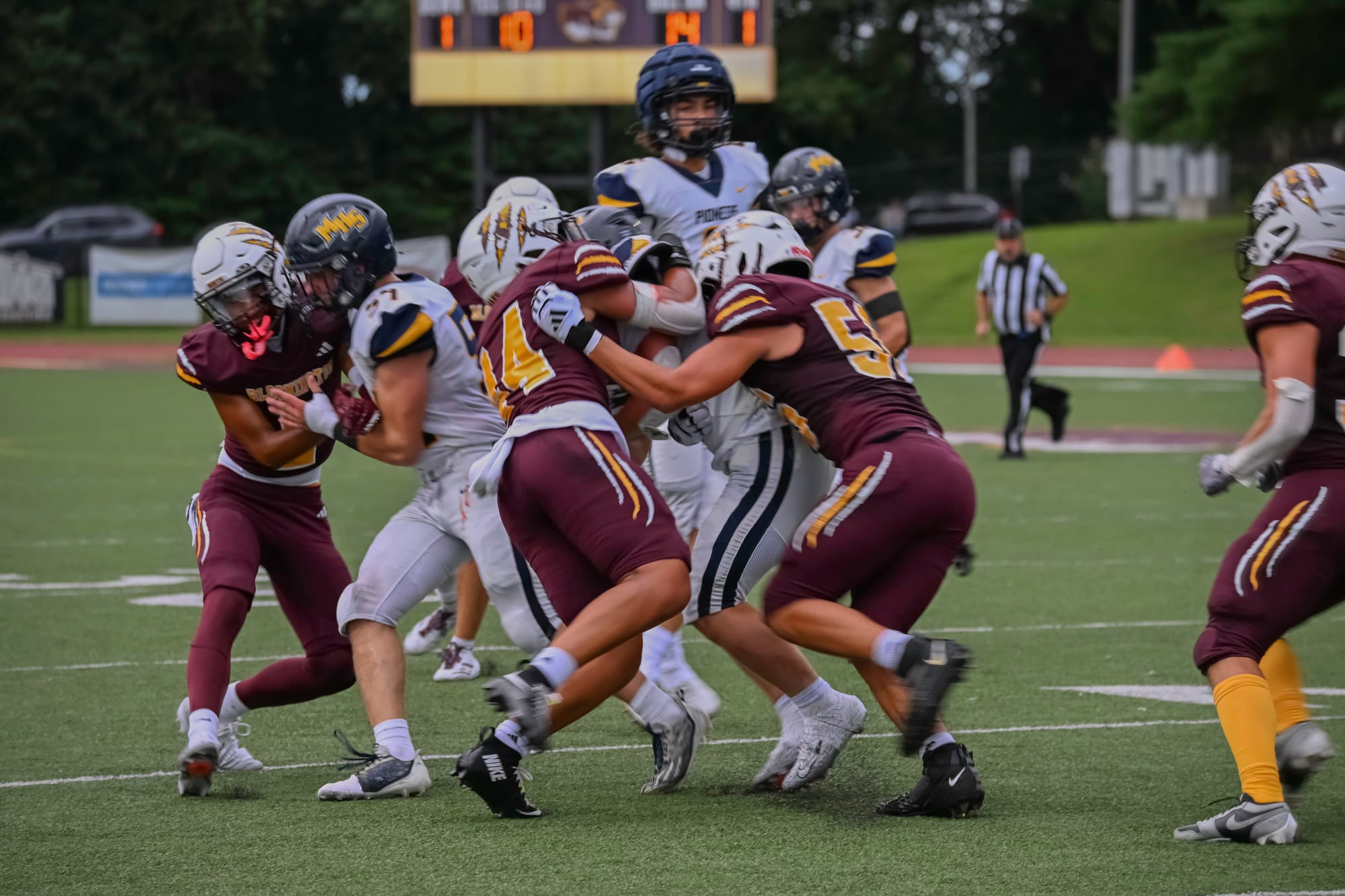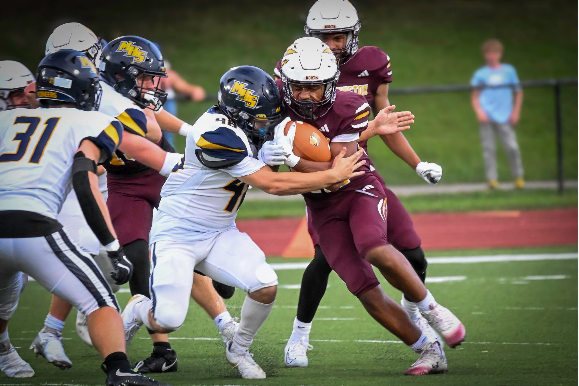 The Bloomington High School North Cougars were outscored 28–14 by the visiting Mooresville Pioneers in their first game of the season.