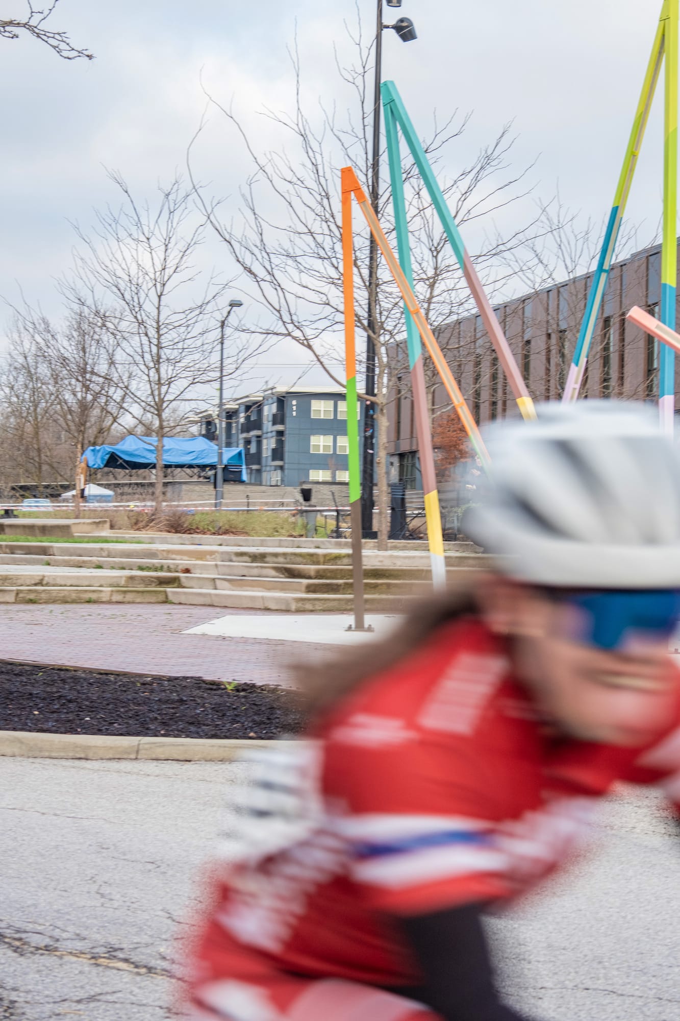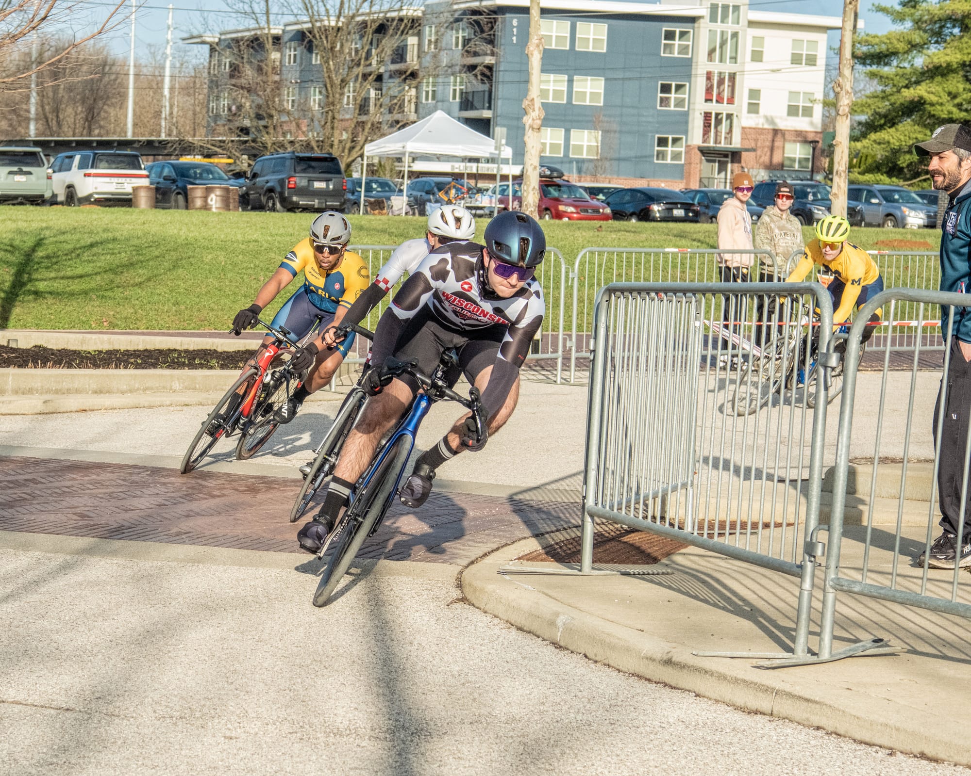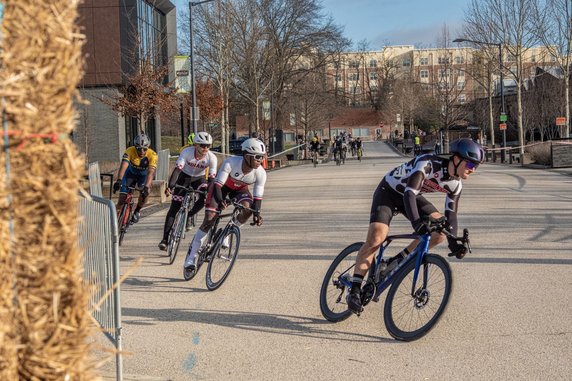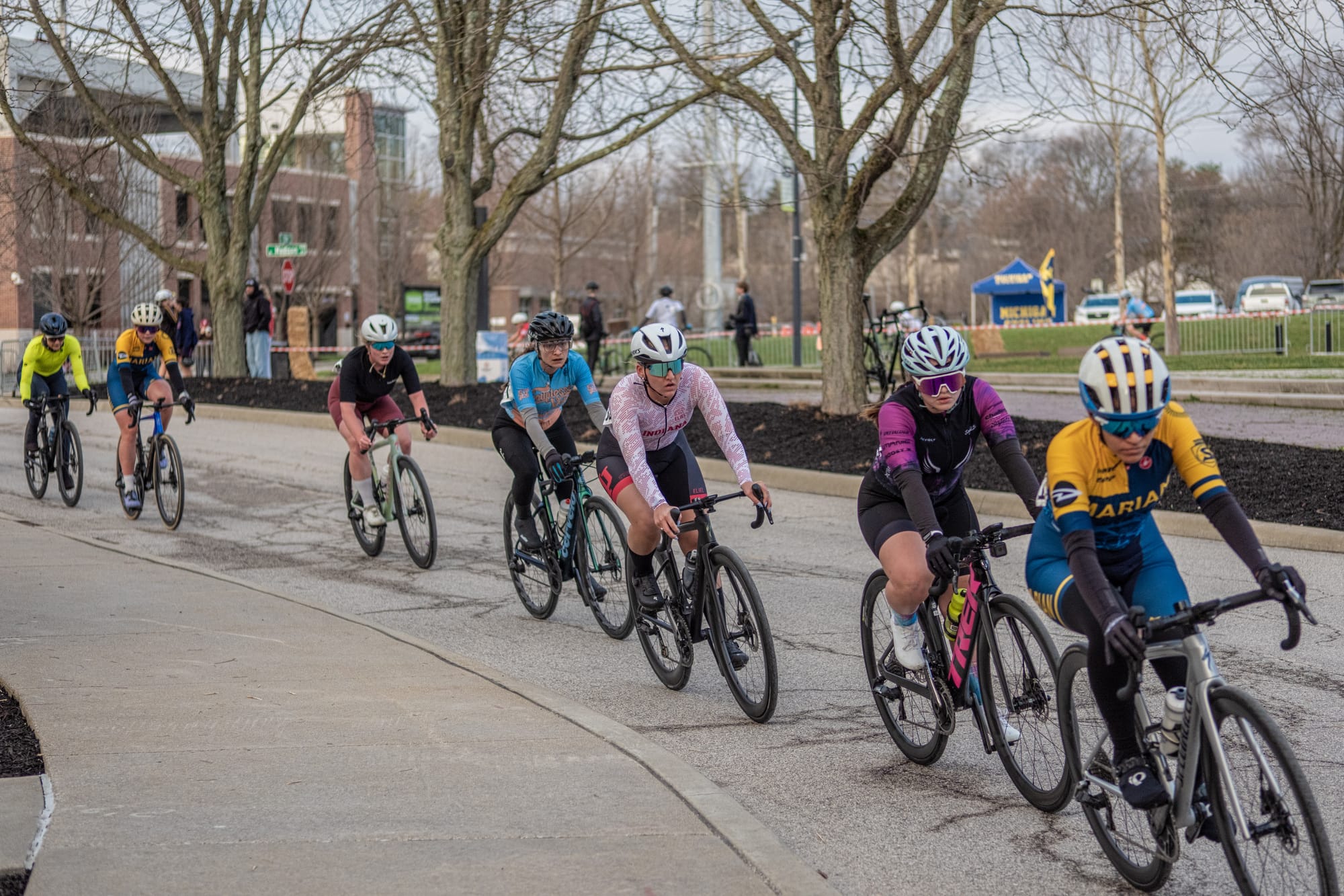 Temperatures in the low 40s made for a crisp early Sunday morning (March 8) for the Candy Stripe Criterium bicycle race hosted by the Cycling Club at Indiana University. It was part of a two-day event.