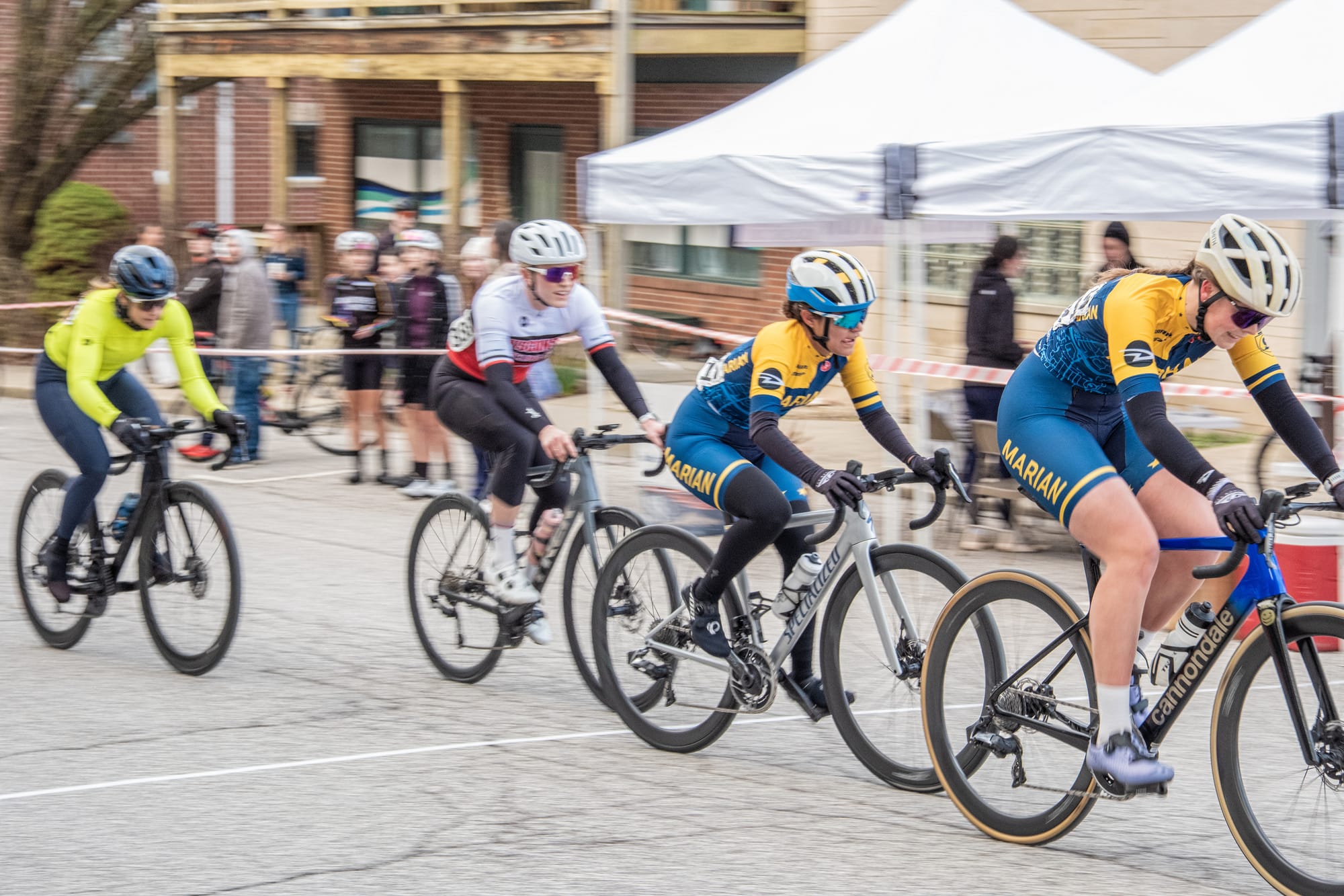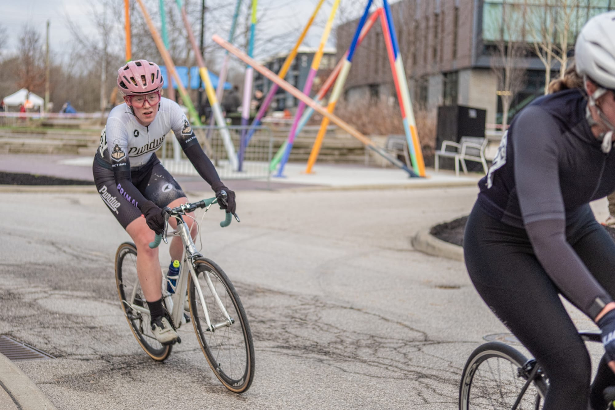 Temperatures in the low 40s made for a crisp early Sunday morning (March 8) for the Candy Stripe Criterium bicycle race hosted by the Cycling Club at Indiana University. It was part of a two-day event. Photographer Kathryn Coers Rossman was on hand to capture some of the action.