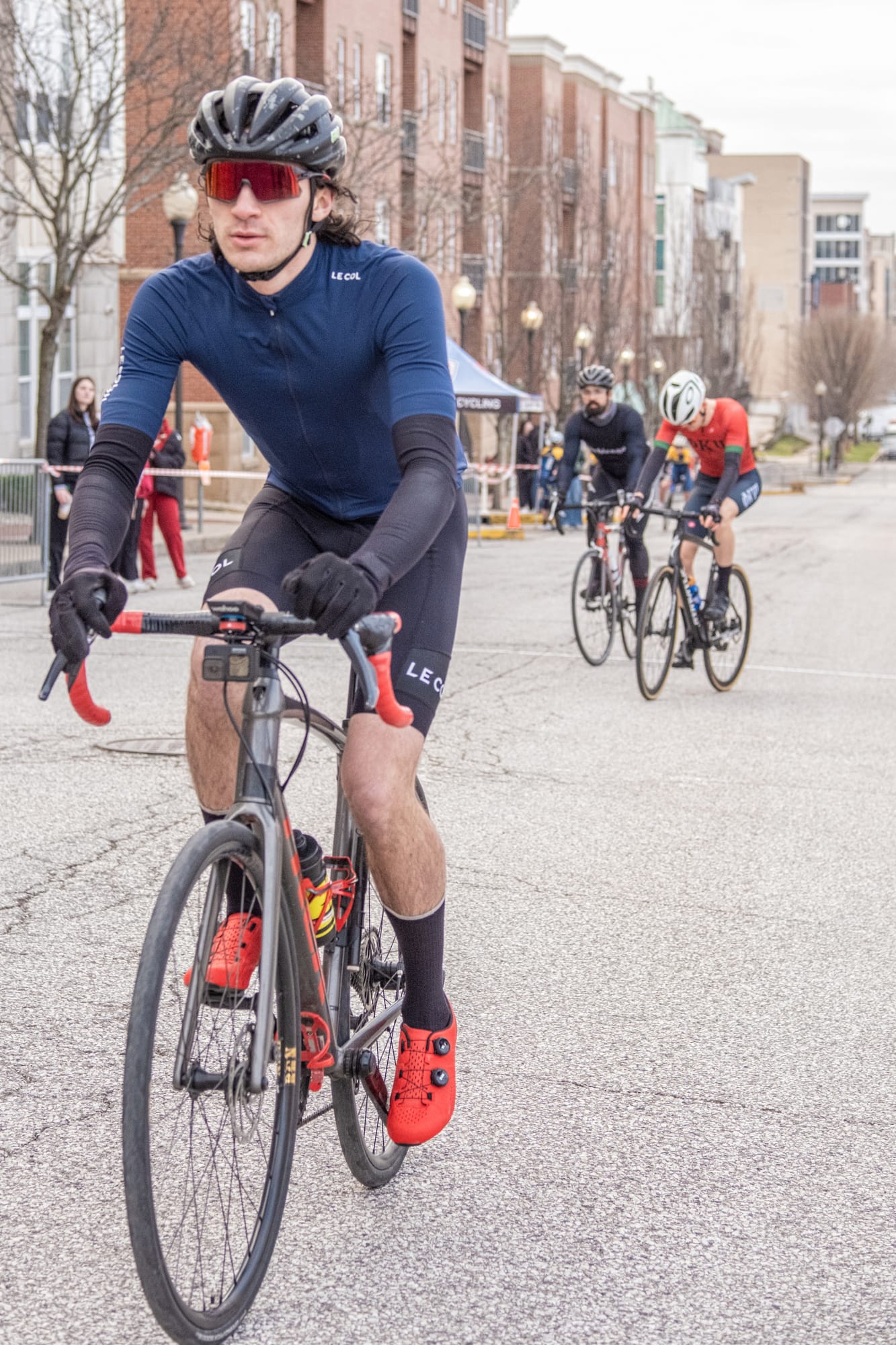 Each race was a multi-lap event for a block of downtown north of Bloomington city hall. The race course took riders around The Mill, up and down Madison and Morton streets between 10th and 11th. The finishing drag was the uphill stretch on Morton Street, from 10th to 11th Street.