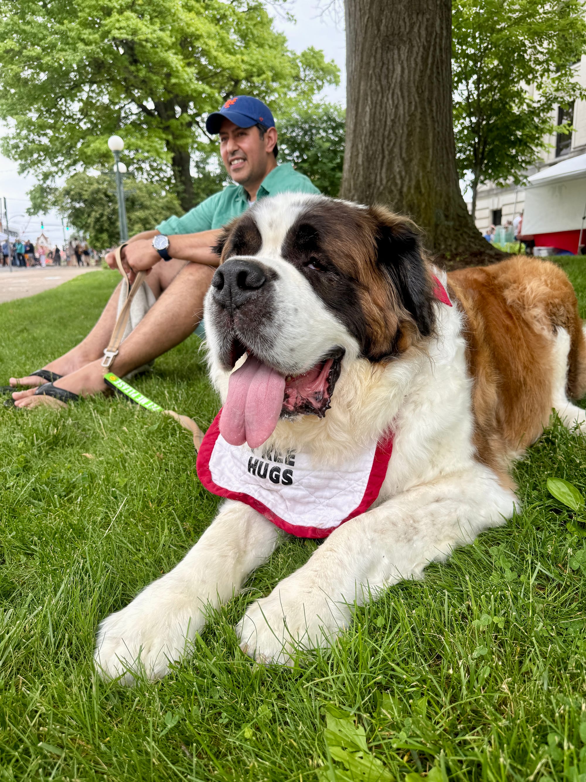 Lydia and Maxine collected free hugs from Parker, a 7-year-old St. Bernard. Granfalloon 2025 [Photo credit: Juliette Kniola]