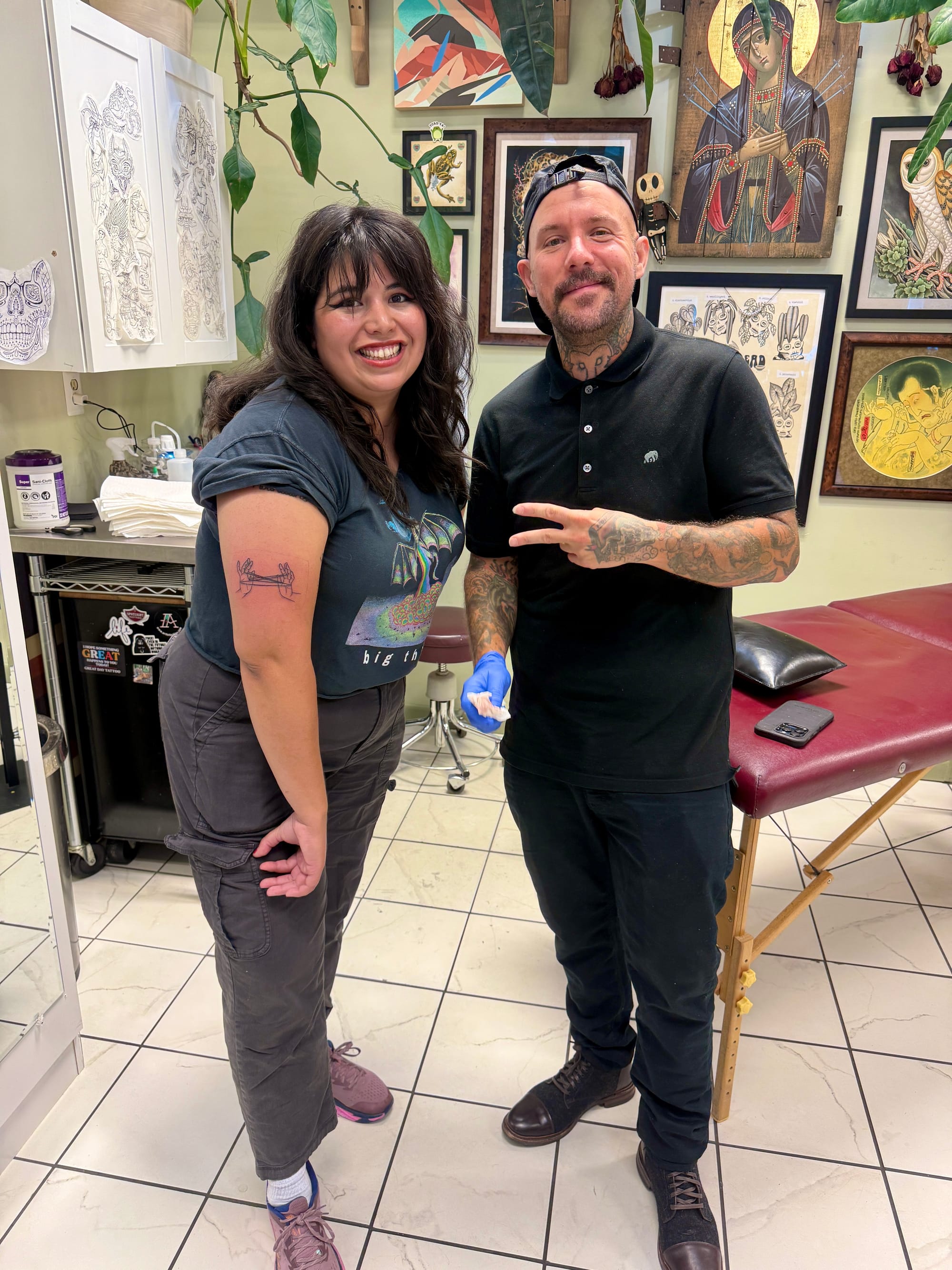 Andy Mendoza Beasley from Louisville got a new cat’s cradle design from tattoo artist, Jason Profant. "Cat's Cradle" is the title of a Vonnegut novel, which introduces the word "granfalloon," which is defined as “a proud and meaningless association of human beings." One of Vonnegut's examples: Hoosiers.