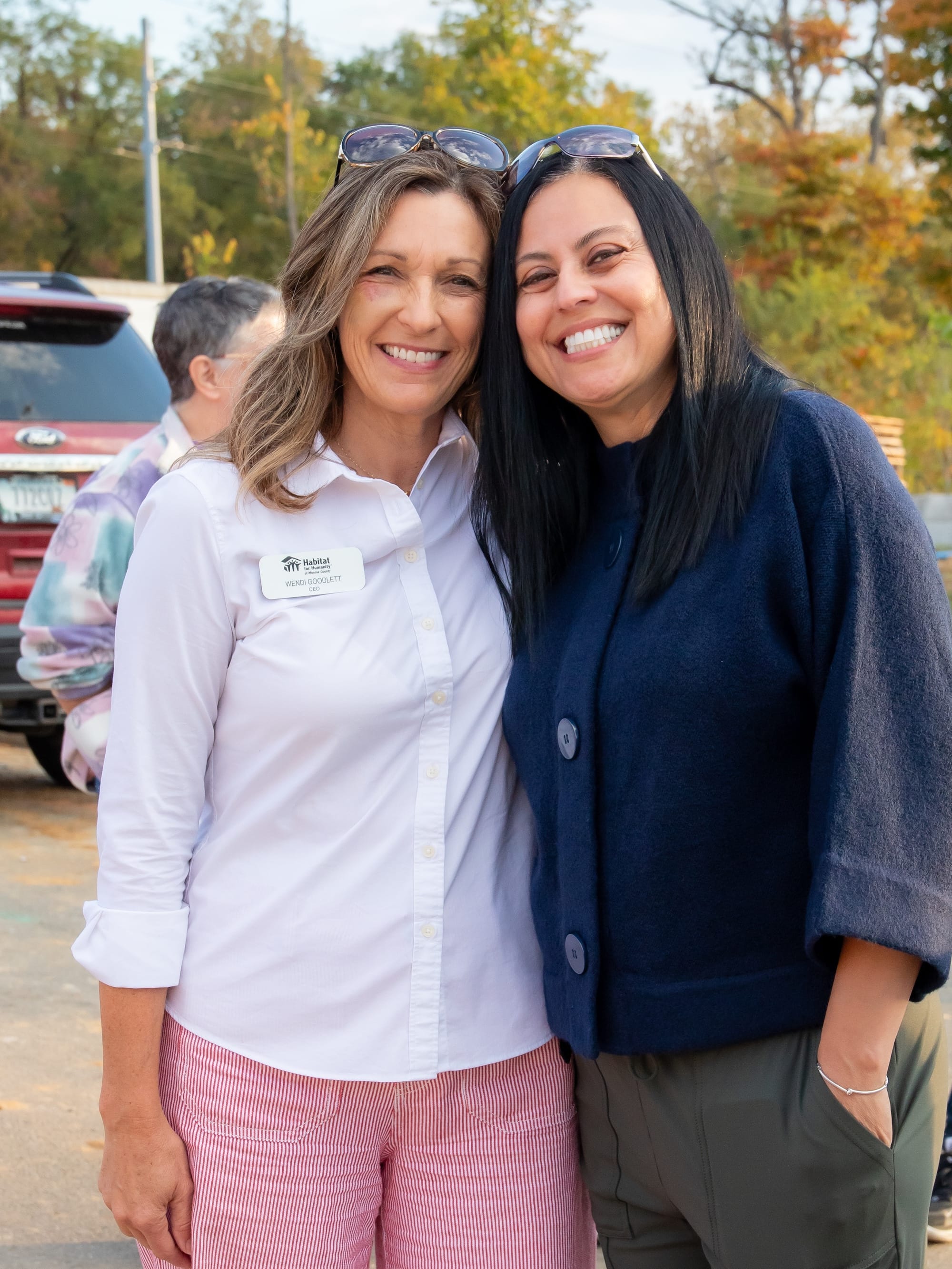 Left: Wendi Goodlett, president and CEO of Habitat for Humanity of Monroe County; and Mollie Evans, Habitat for Humanity International associate director. Right: Goodlett, and Rosa Skinner, the global senior manager of corporate social responsibility and community relations for Whirlpool Corporation. (Juliette Kniola, Oct. 18, 2025)