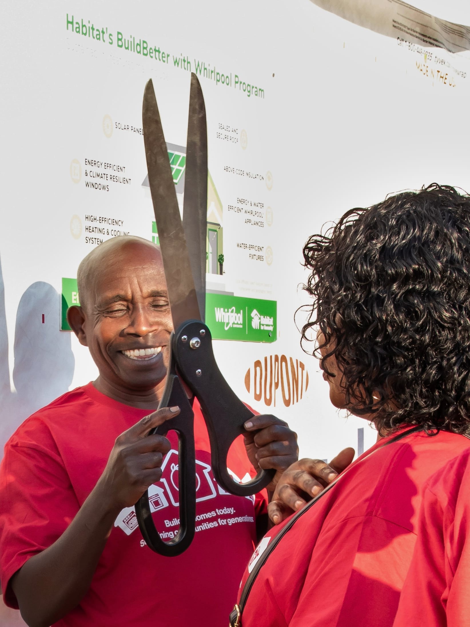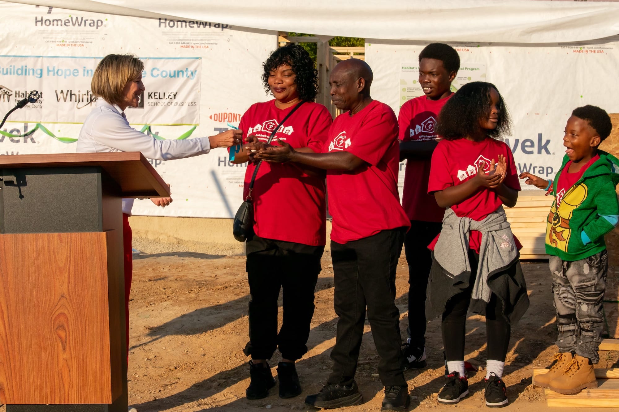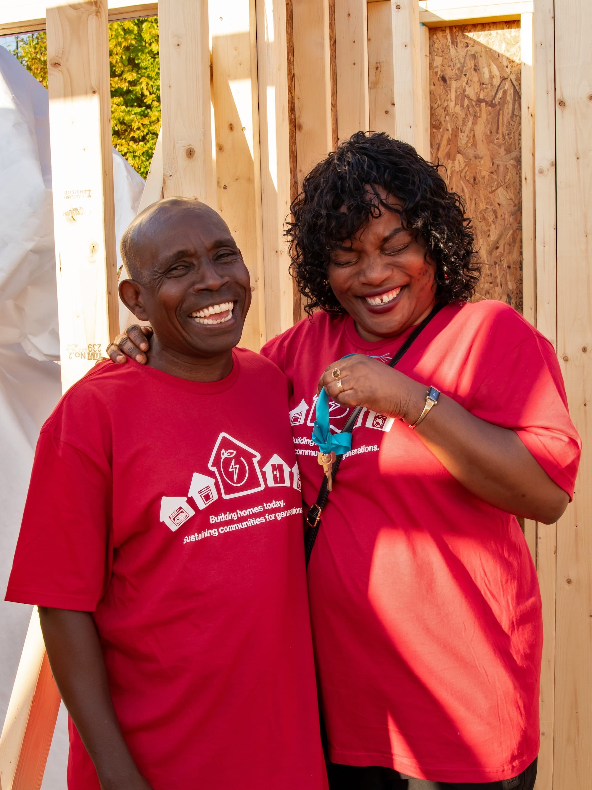 Emmanuel Ngongo Kanamuli and Onga Masumbuko celebrate with the keys to their new Habitat home. (Juliette Kniola, Oct. 18, 2025 )