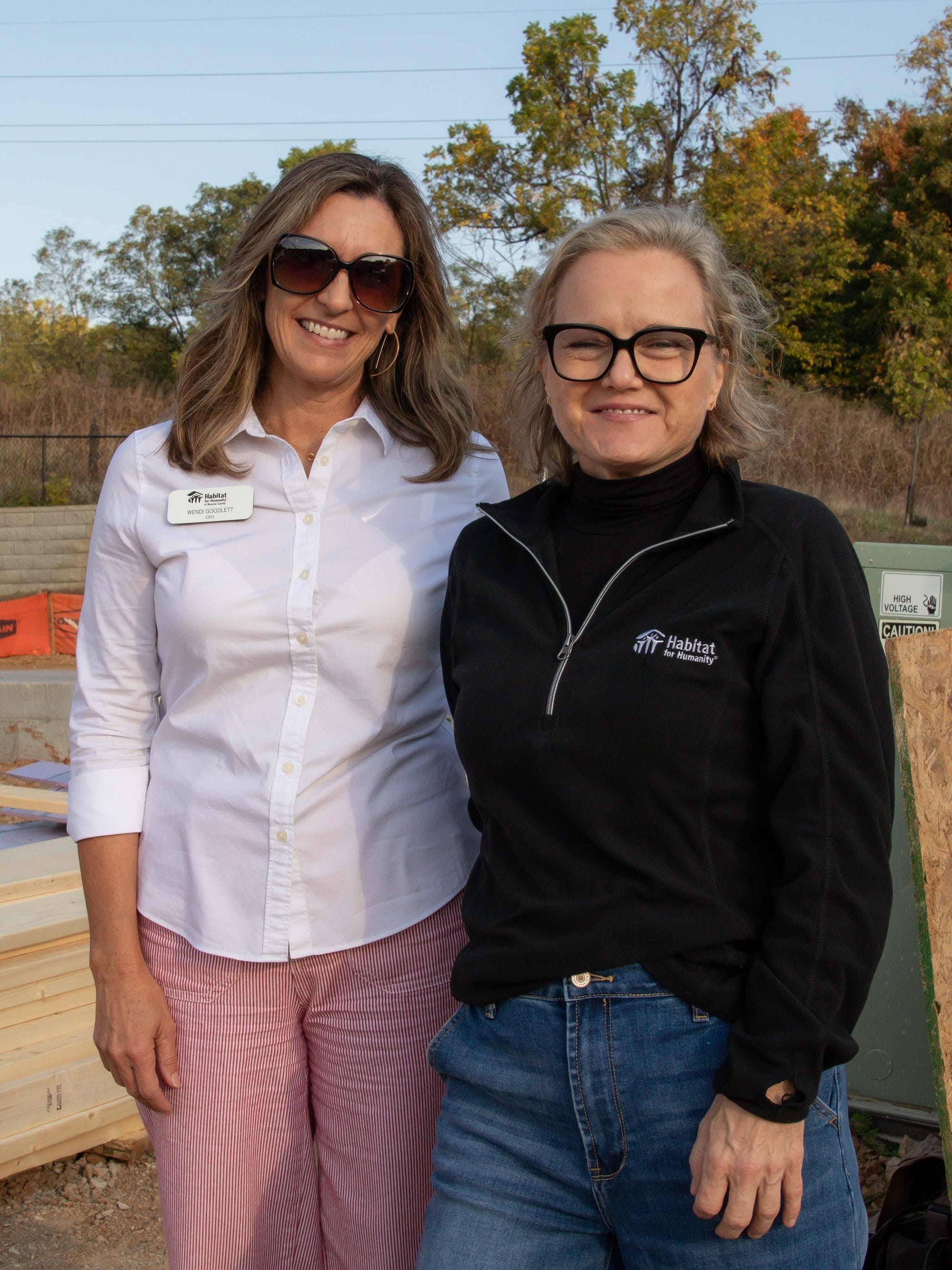 Left: Wendi Goodlett, president and CEO of Habitat for Humanity of Monroe County; and Mollie Evans, Habitat for Humanity International associate director. Right: Goodlett, and Rosa Skinner, the global senior manager of corporate social responsibility and community relations for Whirlpool Corporation. (Juliette Kniola, Oct. 18, 2025)
