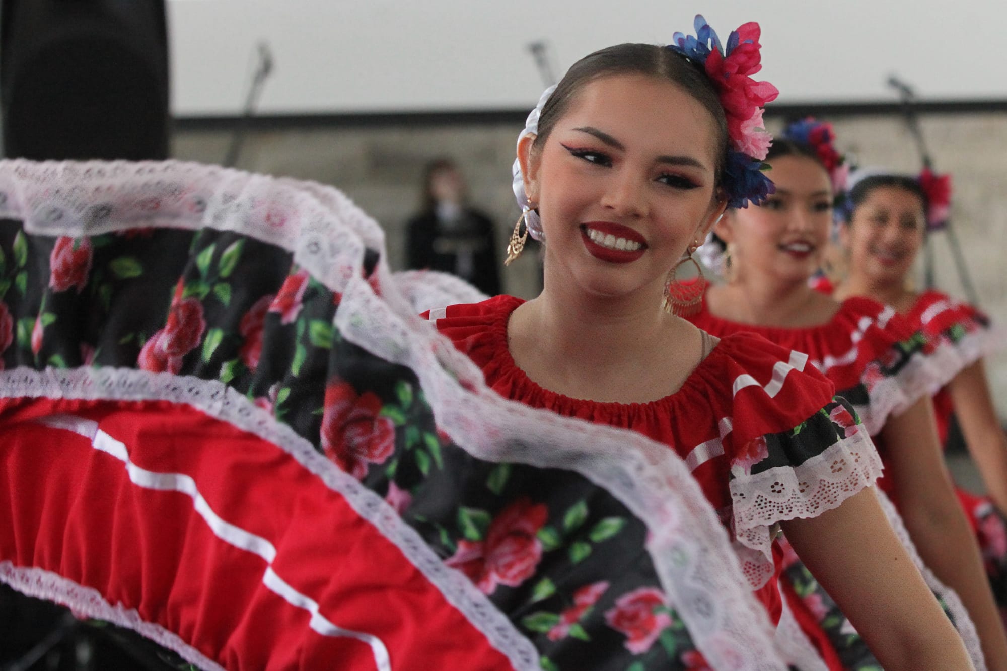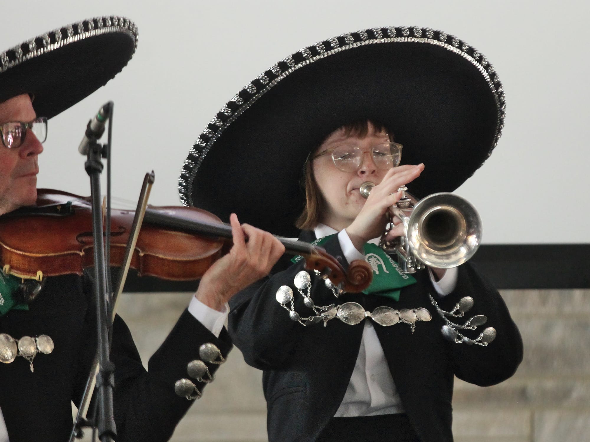 Left: Mariachi Internacional de Bloomington. Middle and Right: Ballet Folklórico de IU. (Dave Askins, Sept. 20, 2025)