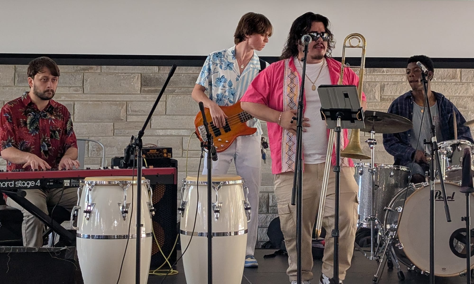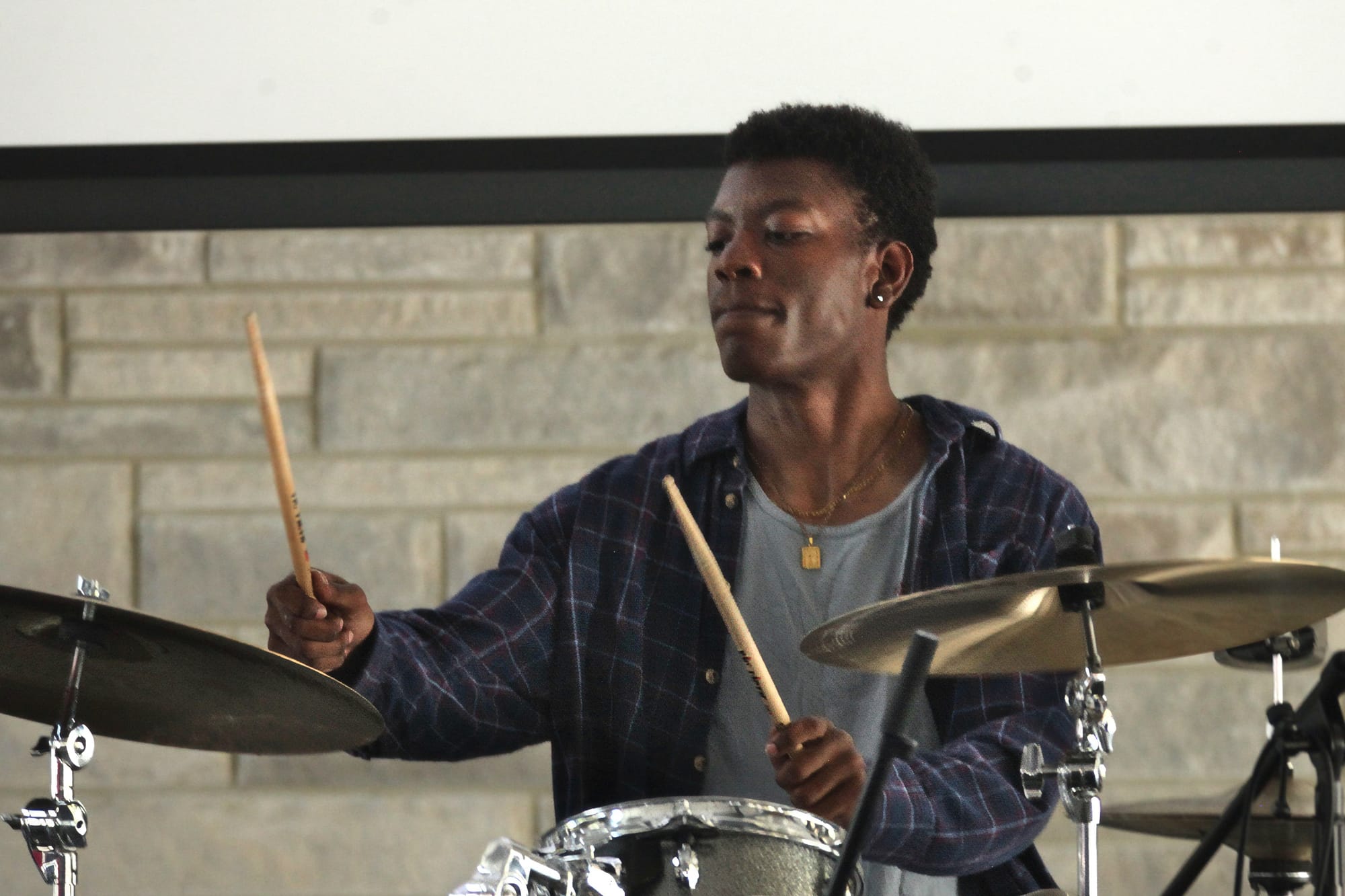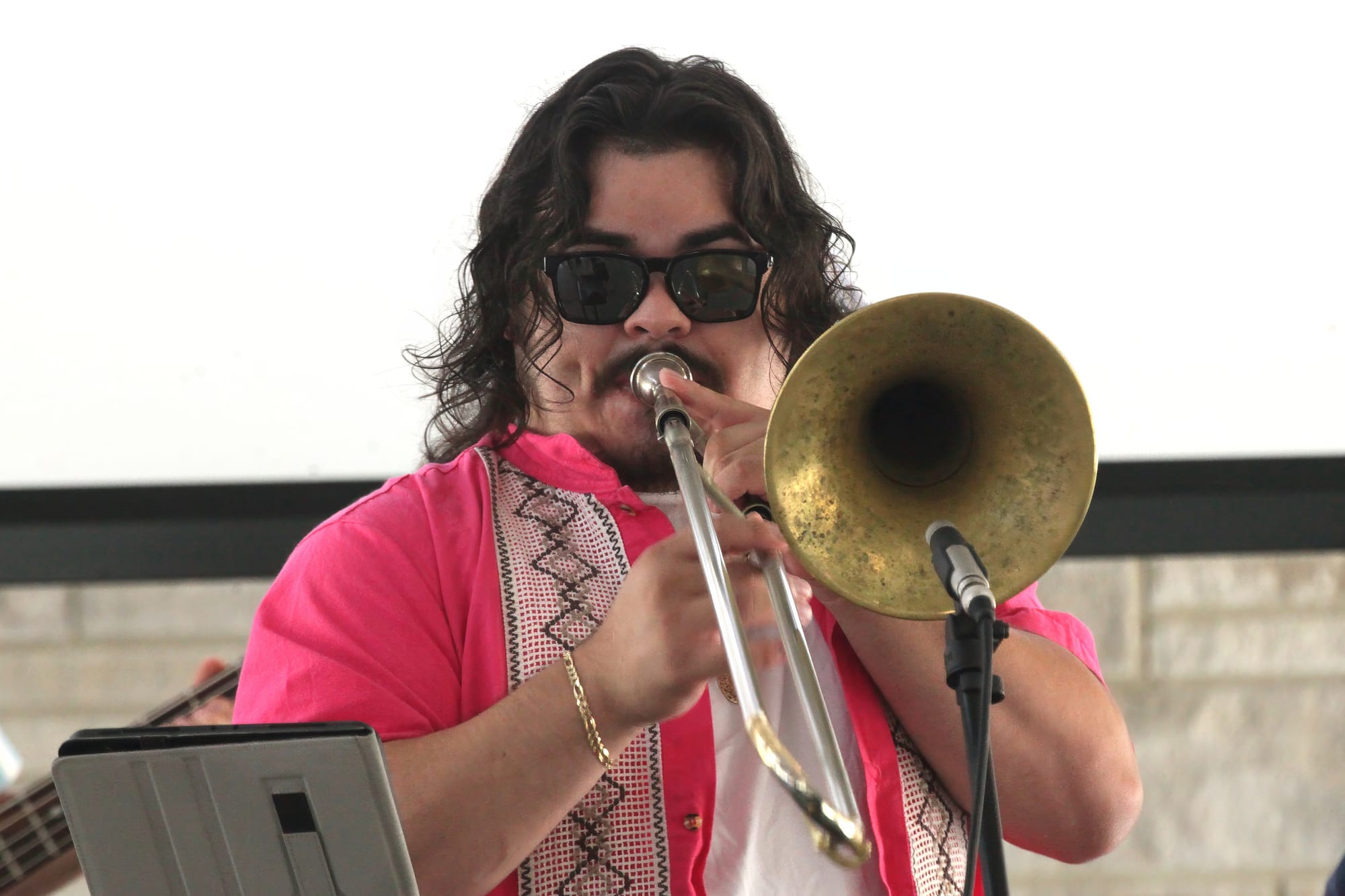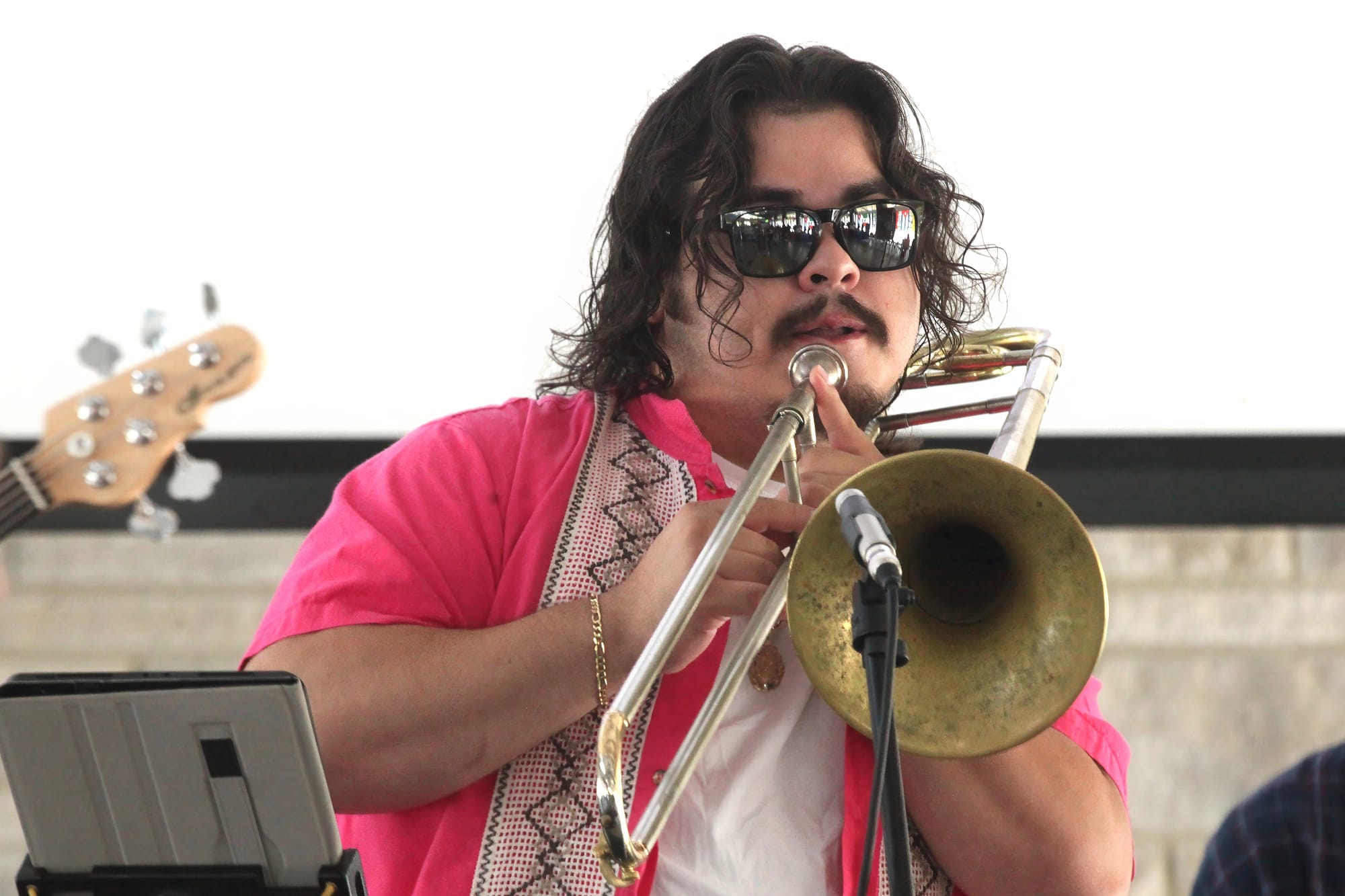 The Vick Luna Quartet featureds Vick Luna on trombone and Josh Humphrey on drums. (Dave Askins, Sept. 20, 2025)