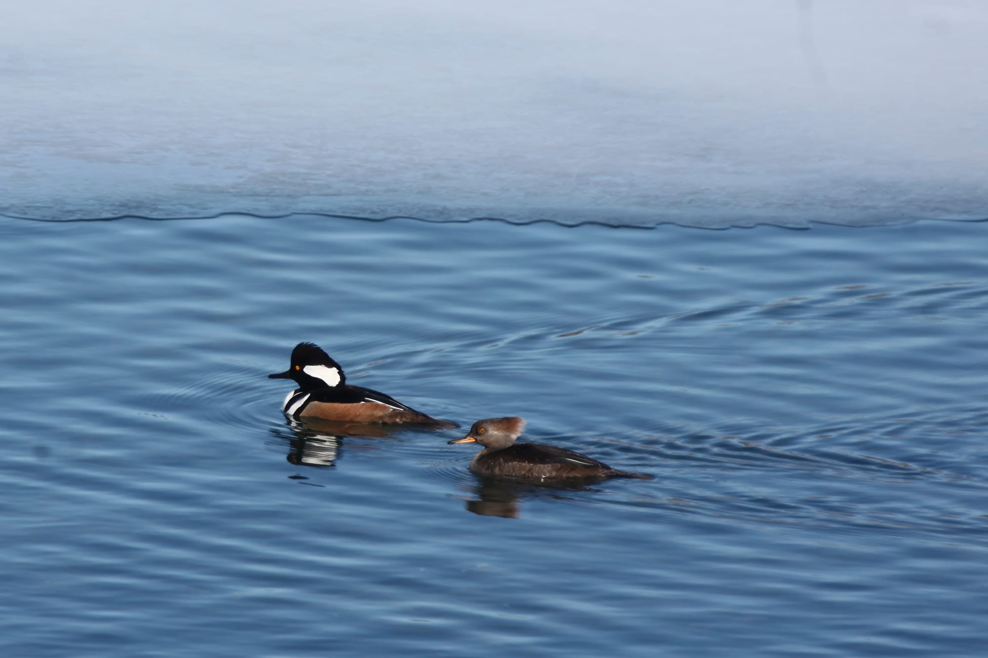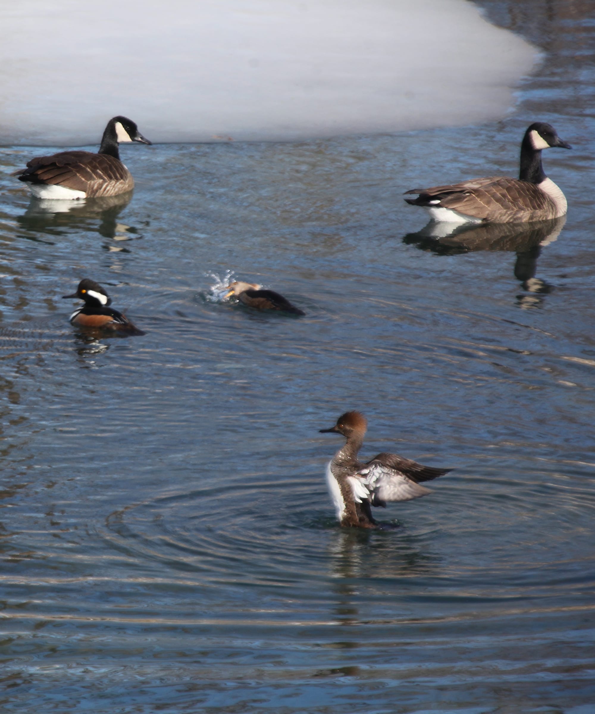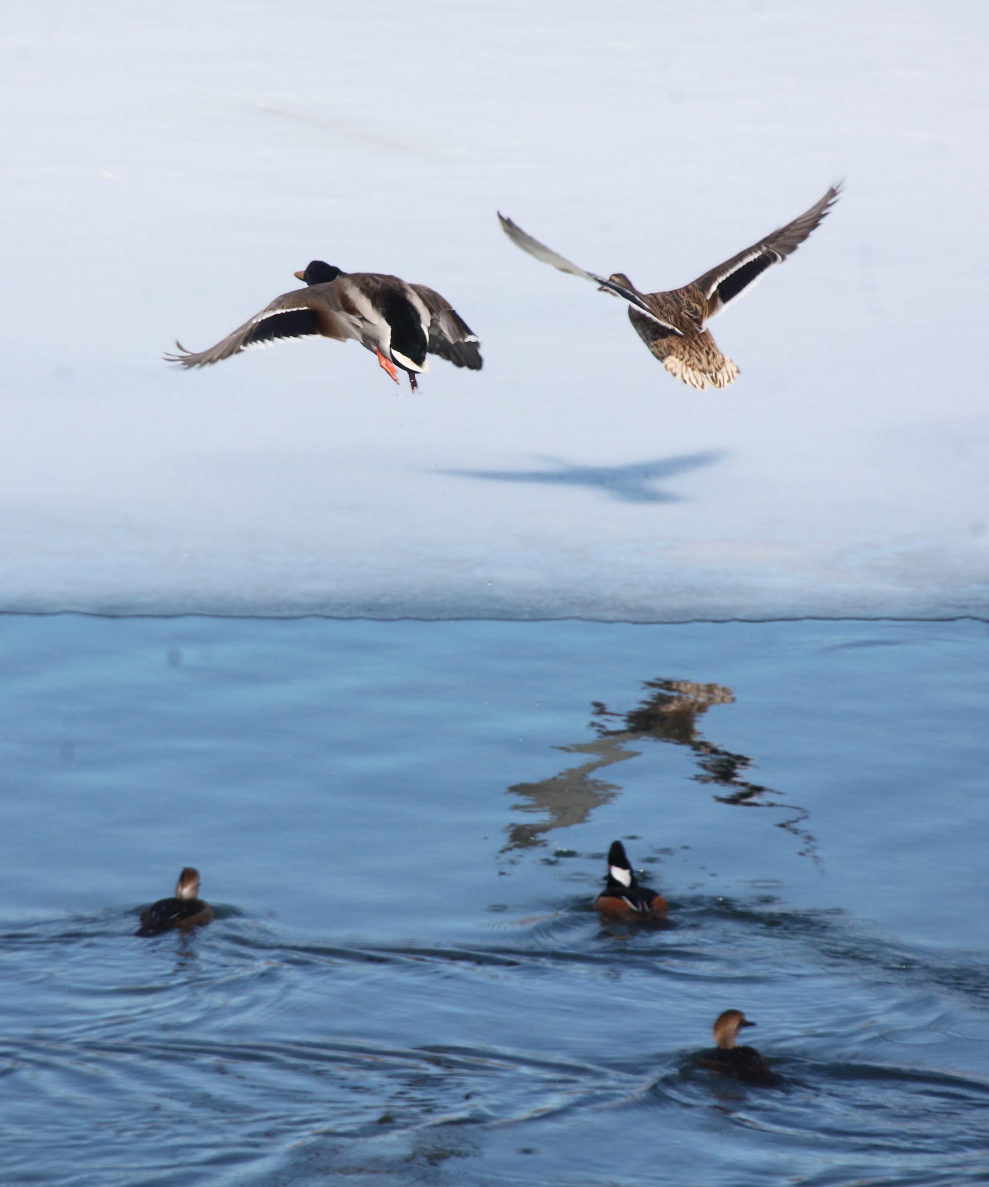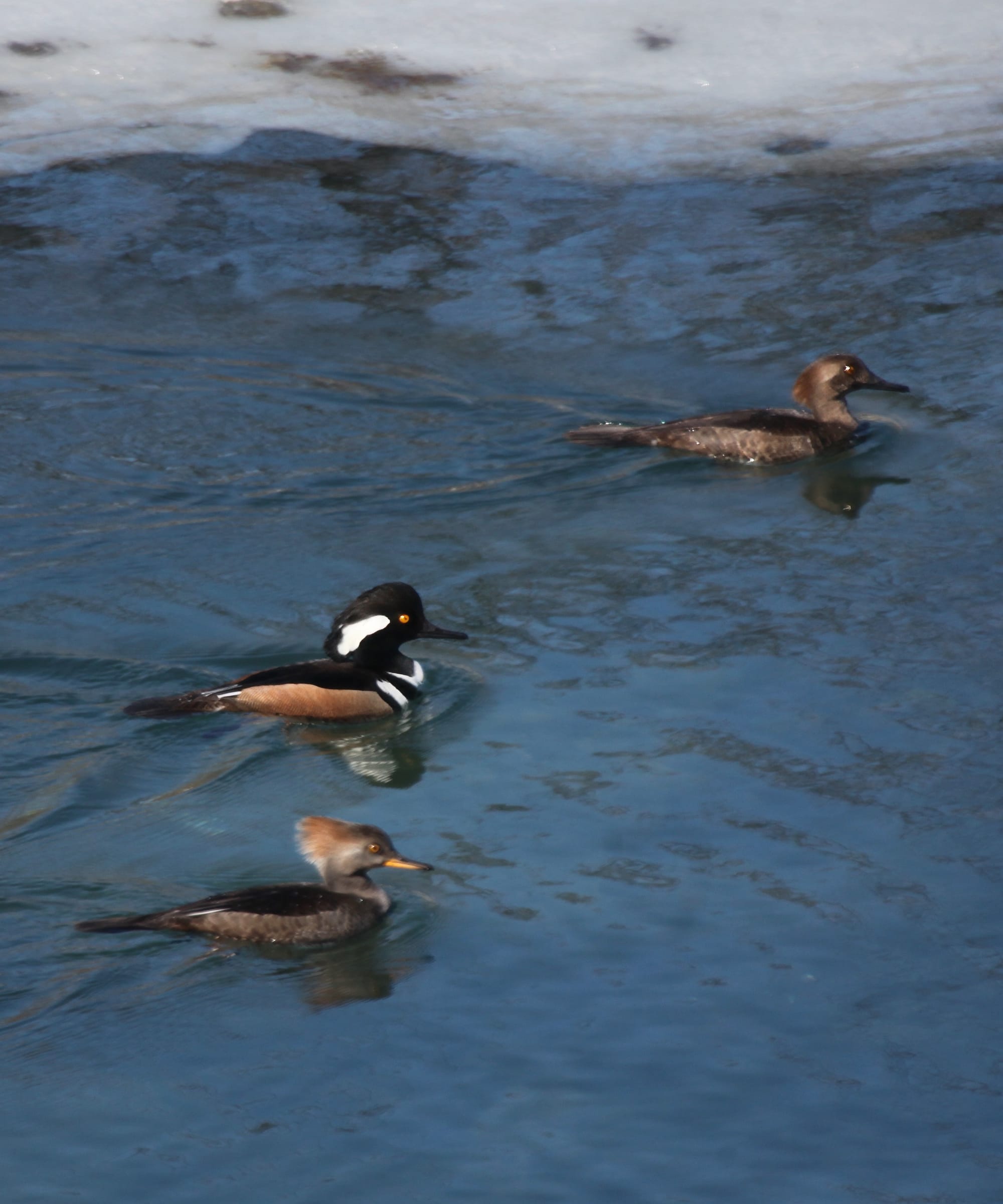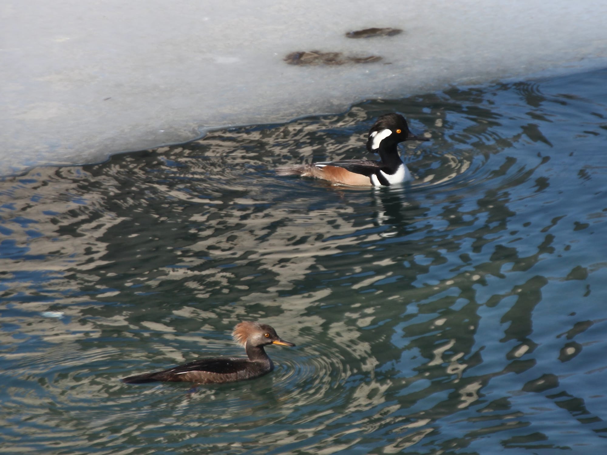 The warming trend over the next few days, which will put the daily high temperature easily above the freezing mark, will melt the rest of the ice soon enough. It’s hard to say how long the hooded mergansers will stick around.