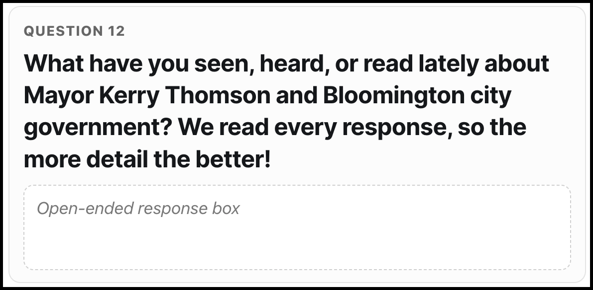 What have you seen, heard, or read lately about Mayor Kerry Thomson and Bloomington city government? We read every response, so the more detail the better!