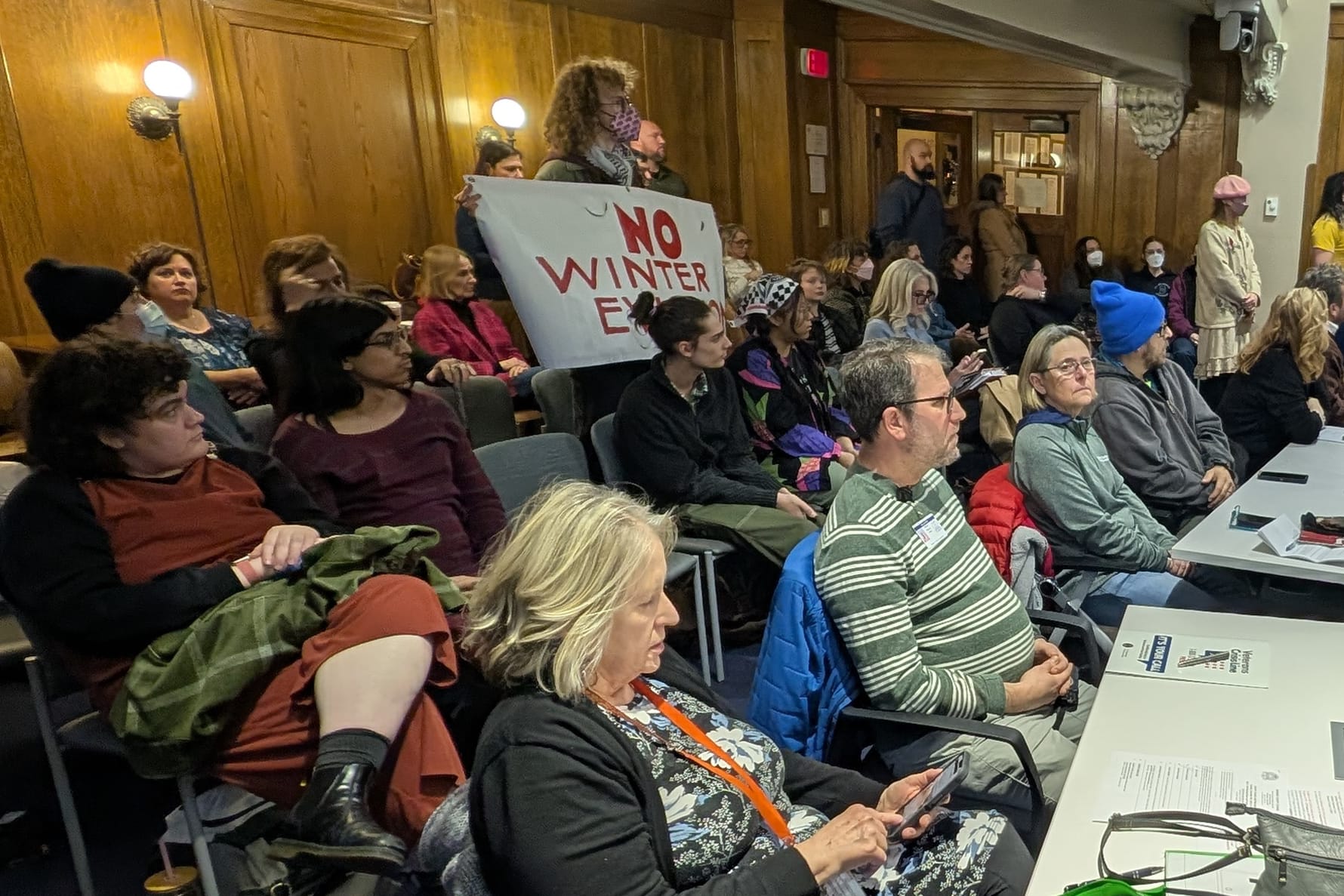 The message from protesters resonated with councilors. President of the council, Jennifer Crossley, had an especially sympathetic ear. One of the comments from the public mic came from a woman who said, “I'm someone myself who has teetered on the edge of homelessness more than once, and if it hadn't been for people in my community that took me in, I would have been homeless with a two-year-old.” Crossley said that when she heard that comment, she choked up, because “many, many years ago, that could have been me.”