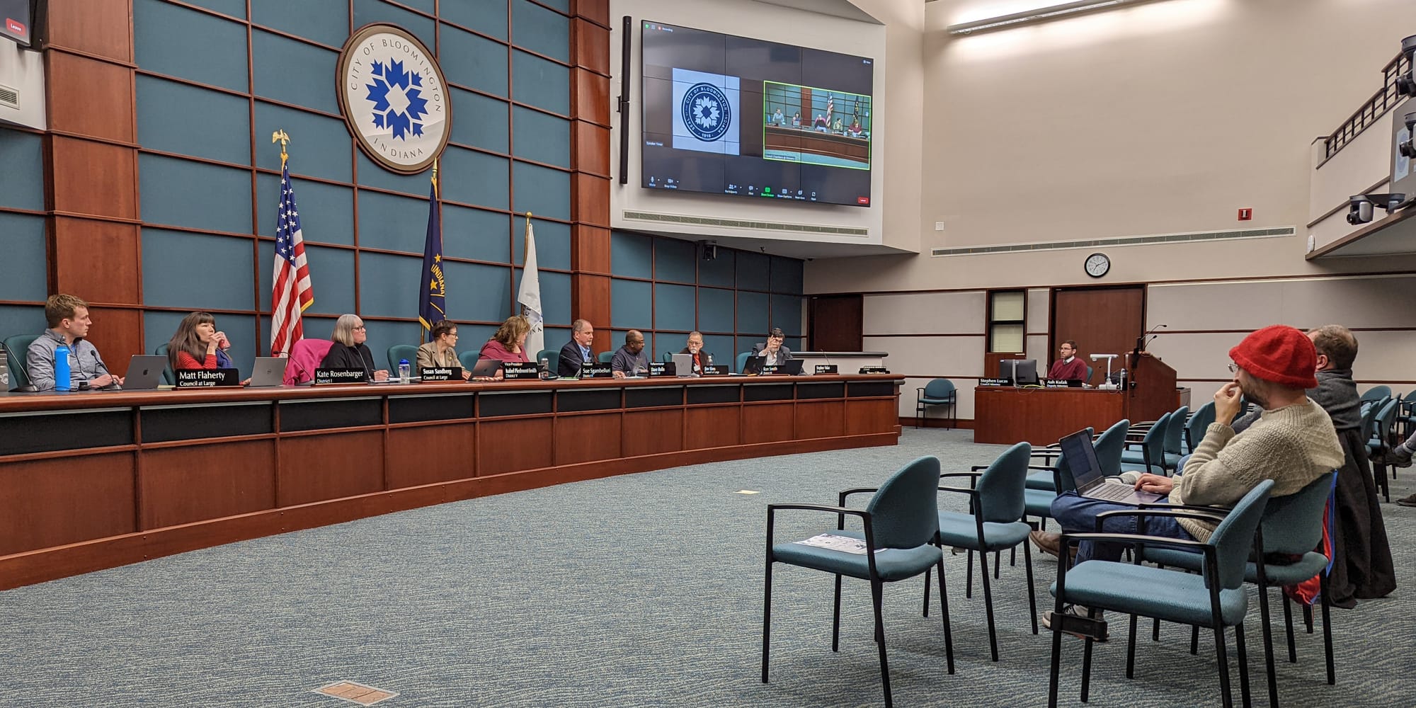 The committee is chaired by Flaherty. The other members are the council president, vice president, and parliamentarian, who are Sgambelluri, Isabel Piedmont-Smith, and Dave Rollo, respectively.