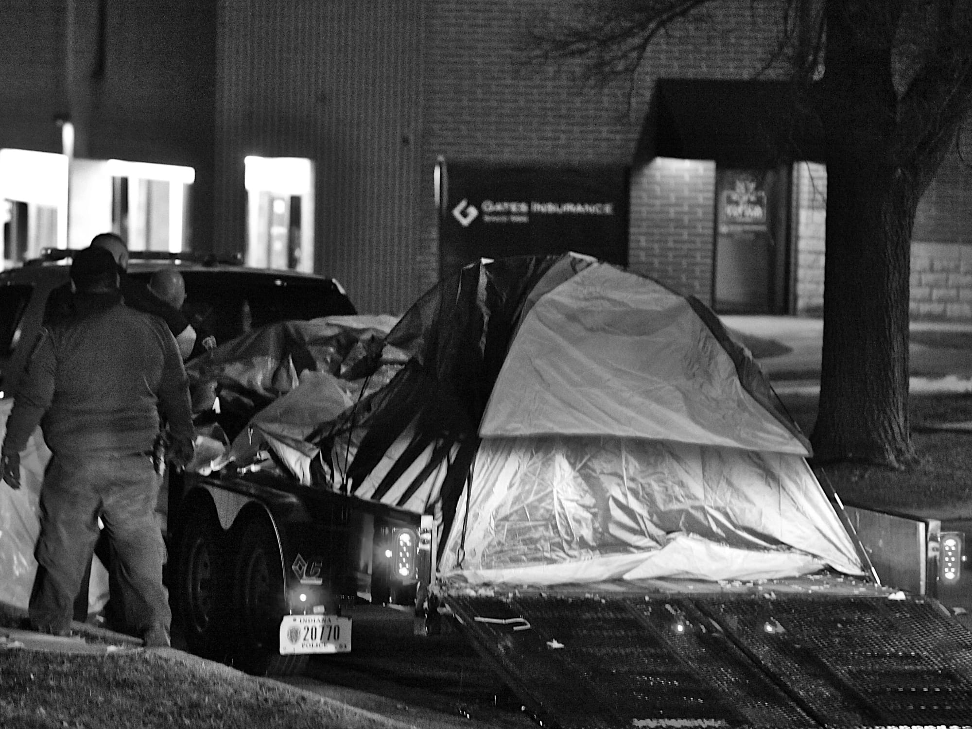 After that, BPD patrol officers and evidence technicians arrived and took pictures of the tents, tarps and other scattered items, so that their location in the park was documented. They started loading the property into trucks and trailers that had been deployed on the College Avenue side of the park. According to police chief Mike Diekhoff, the property was transported to a parks and recreation facility where it could eventually be claimed by its owners.