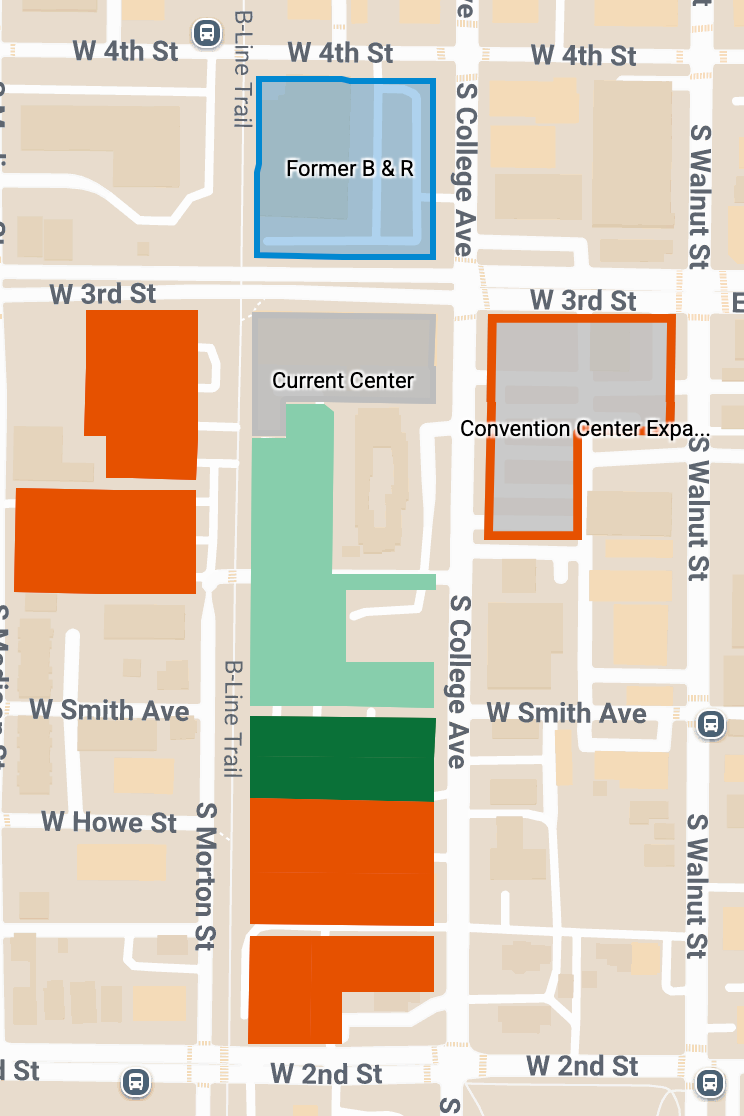 Now, the Monroe County capital improvement board (CIB), which is overseeing the convention center expansion, is looking at alternatives for a host hotel site that could be of interest to prospective hoteliers. It’s the CIB’s job under the city-county interlocal agreement, to select a hotelier. In mid-February, the CIB asked the county and city governments to transfer real estate south and west of the current convention center for use as a host hotel site. It is land that both local governments have agreed to contribute to the project at no cost.