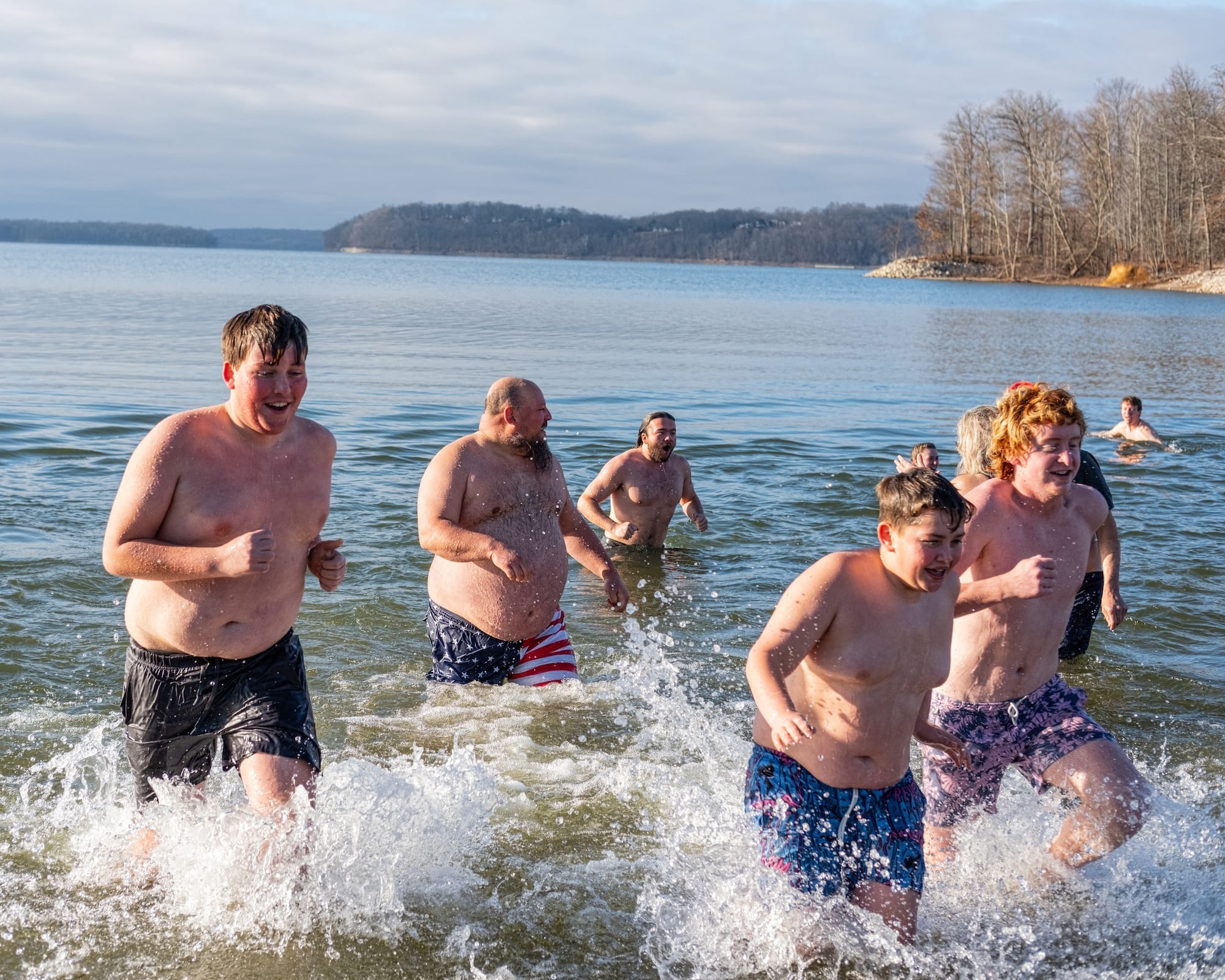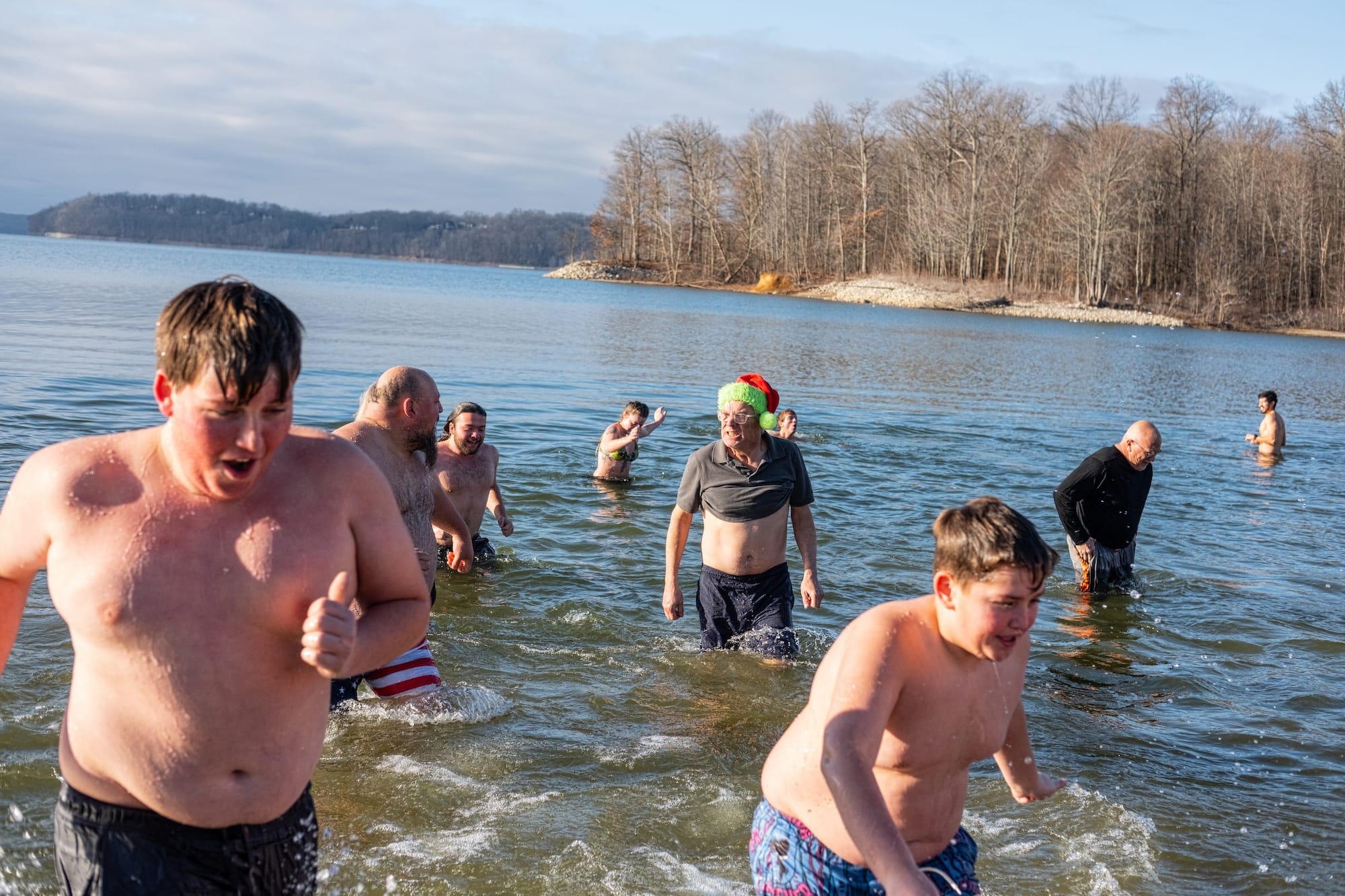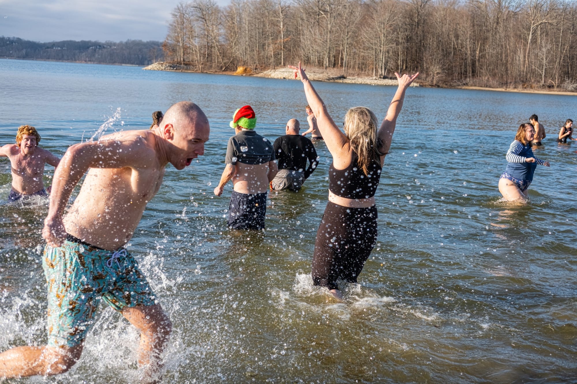 New Year’s Day polar bear plunge, Paynetown State Recreation Area at Monroe Lake, Bloomington, IN (Kathryn Coers Rossman, Jan. 1, 2026)