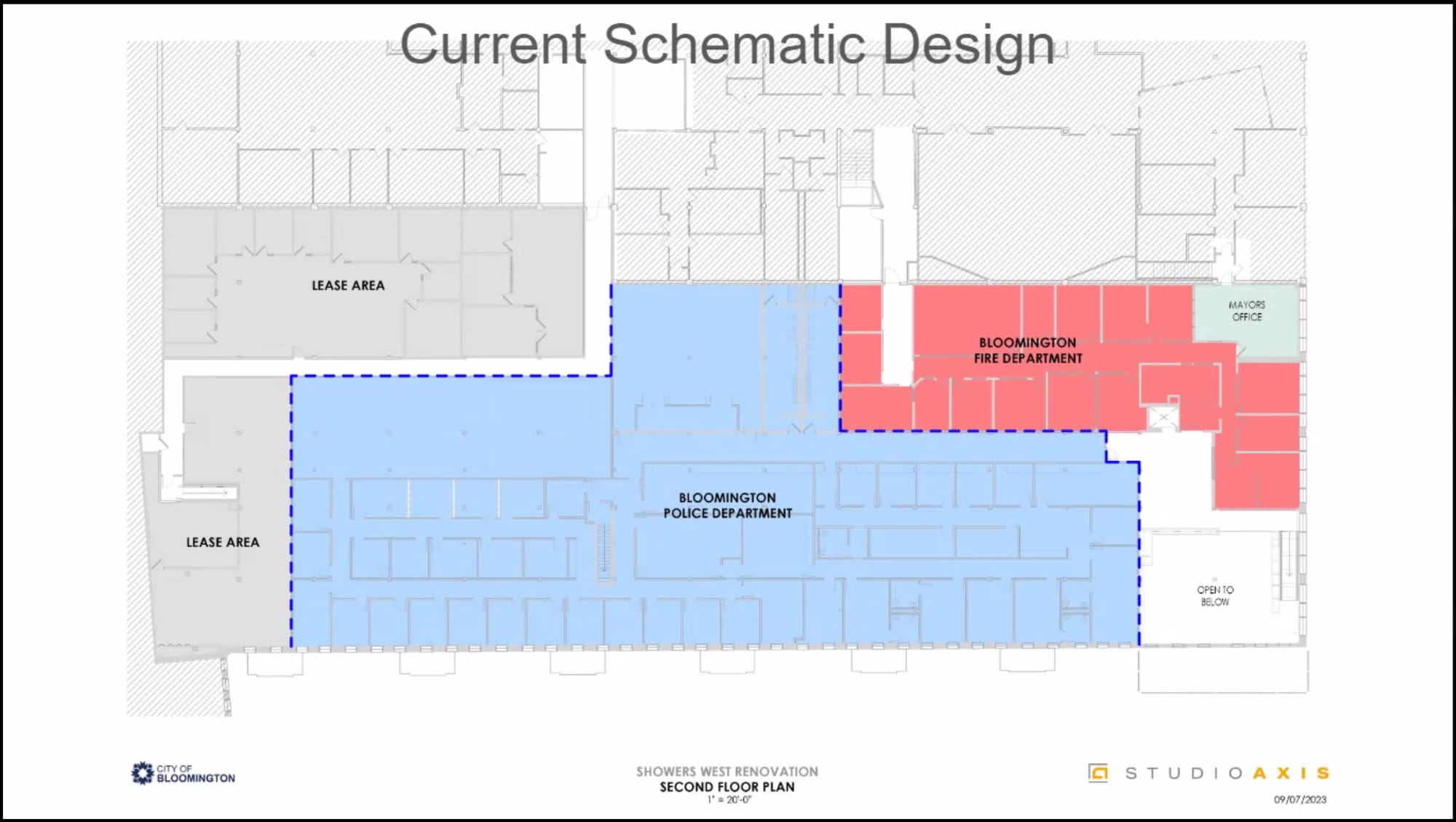 The hoped-for timeline was described on Friday by project architect Chris Hagan from StudioAXIS. Hagan’s firm was selected by Bloomington for the project in April, after a different firm, Hoefer Welker, had initially been selected in March.