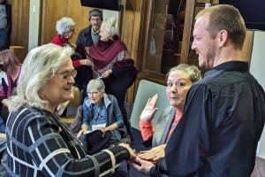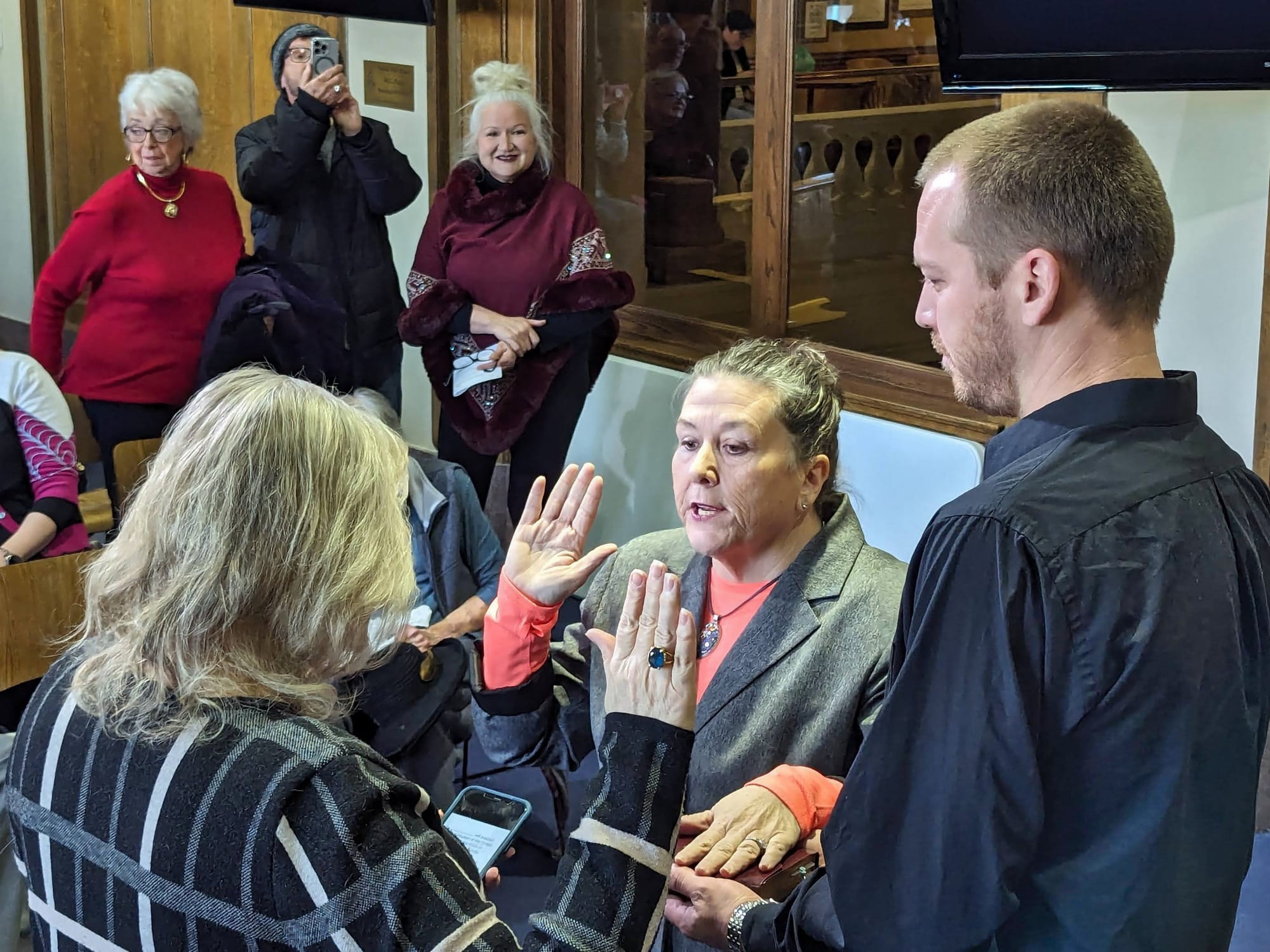 Smith was sworn into office on the spot, by Monroe County circuit court judge Christine Talley Haseman.