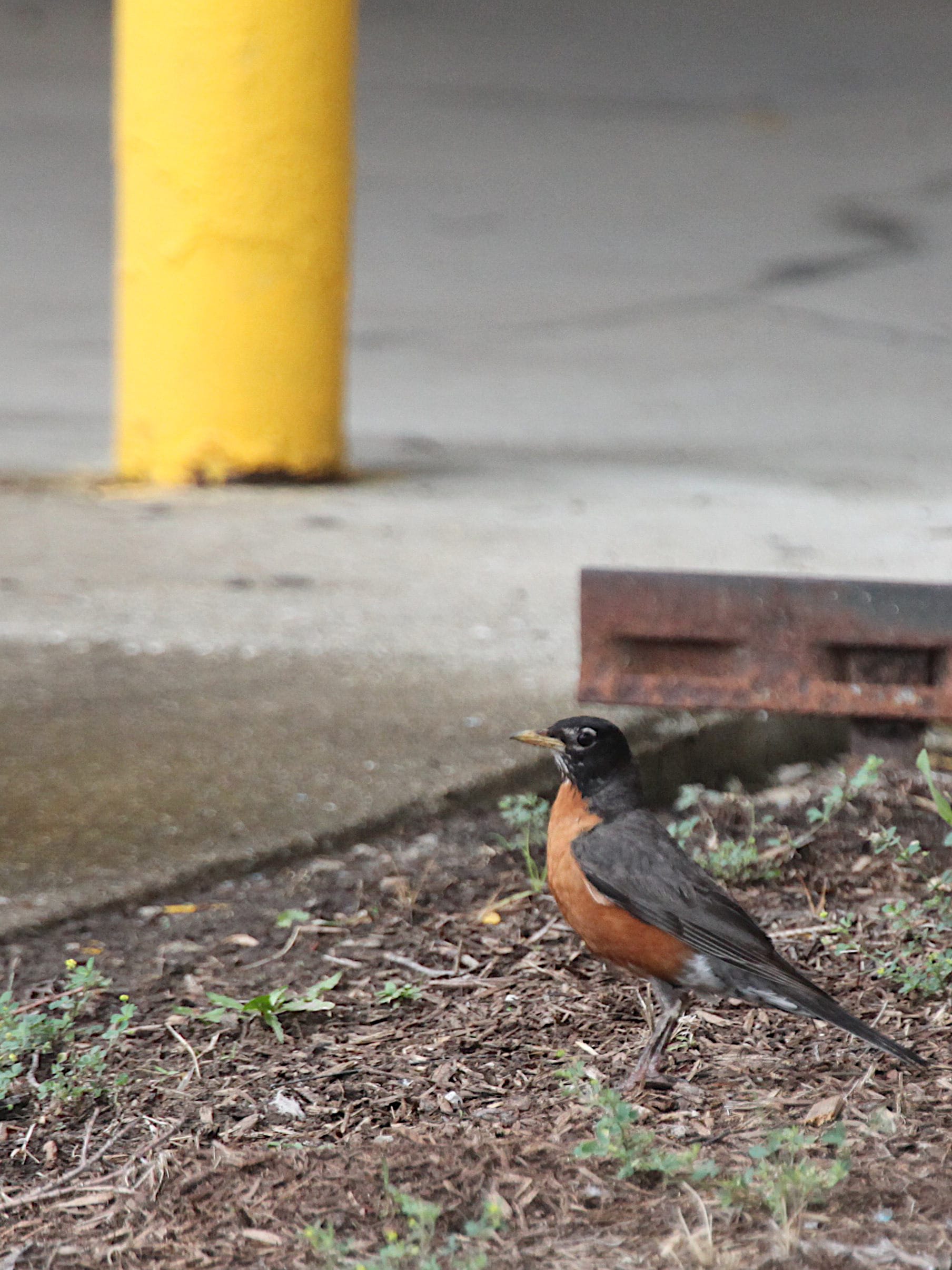 One of those places where there are birds, American robins specifically, is just outside the Indiana University Poplars parking garage.
