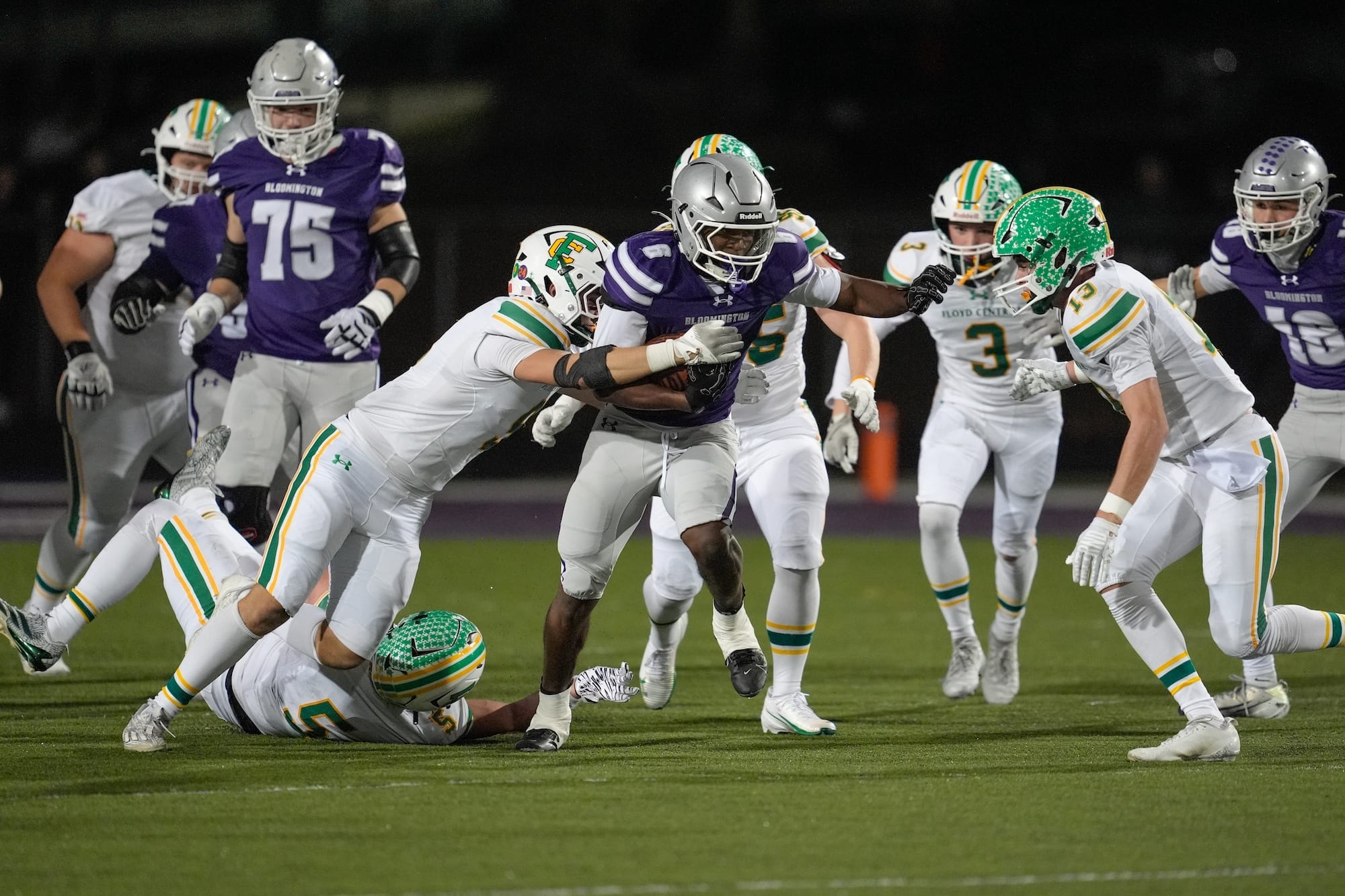 Bloomington South erased an early 7–6 deficit with 49 unanswered points to beat Floyd Central 55–7 and claim a third straight regional title. Duncan Combs threw for 186 yards, Braylen Townsend ran for 110, and Sam Giles sparked the surge with a 98-yard kickoff return.